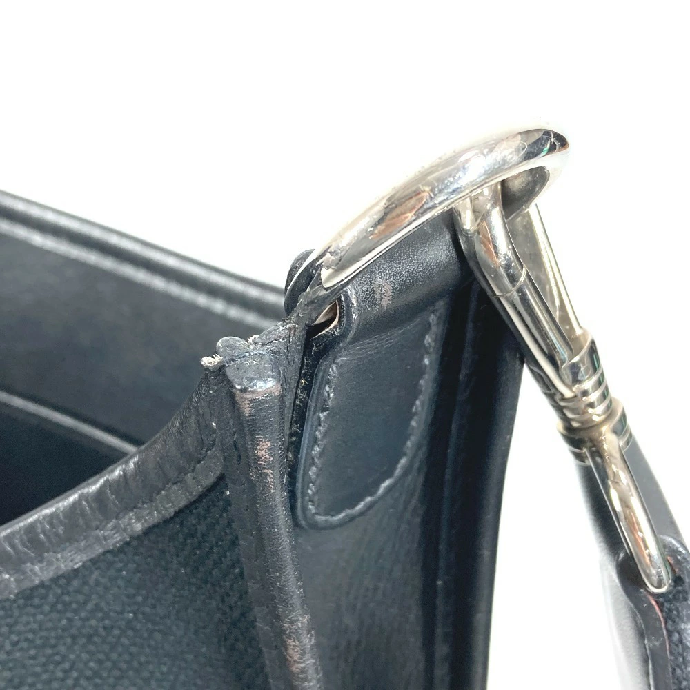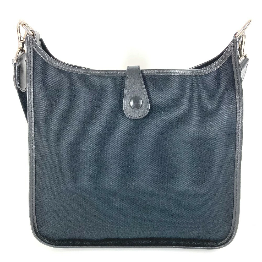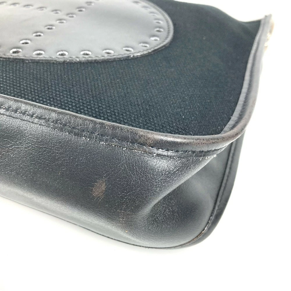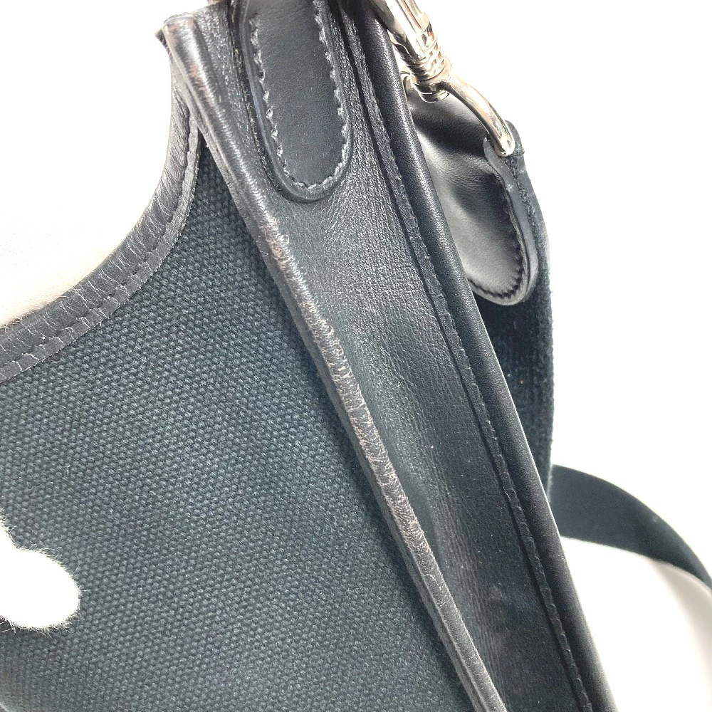 Pre-owned HERMES Evelyne 1 PM shoulder bag in leather/canvas, black.
