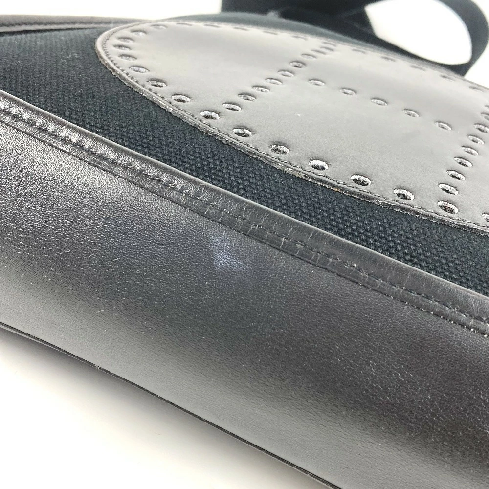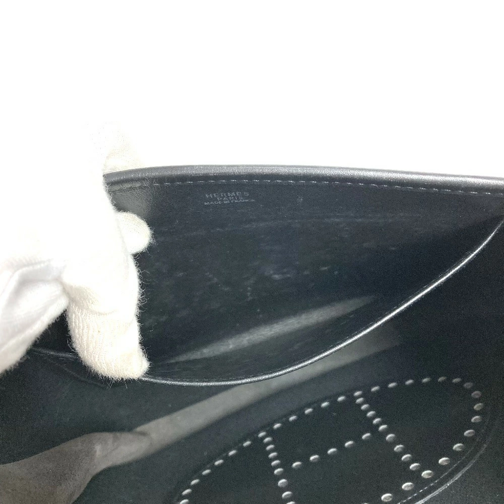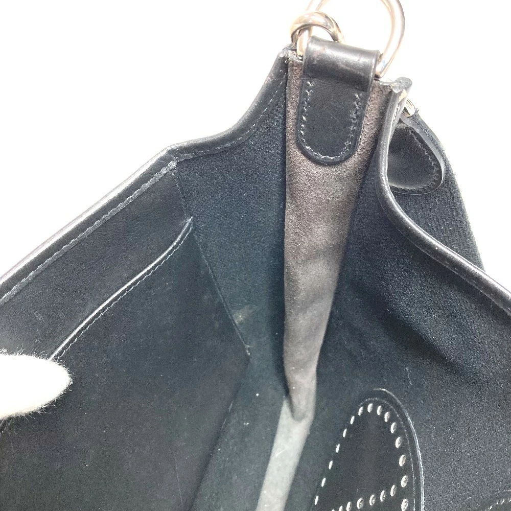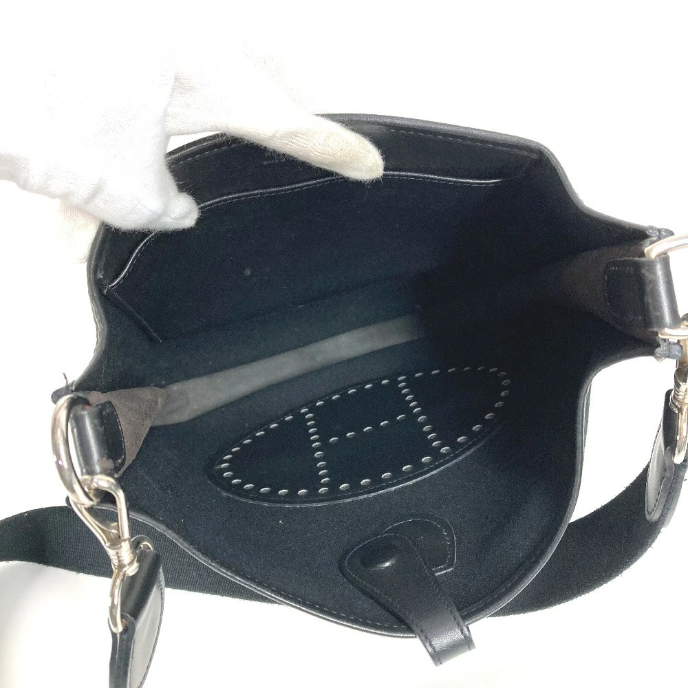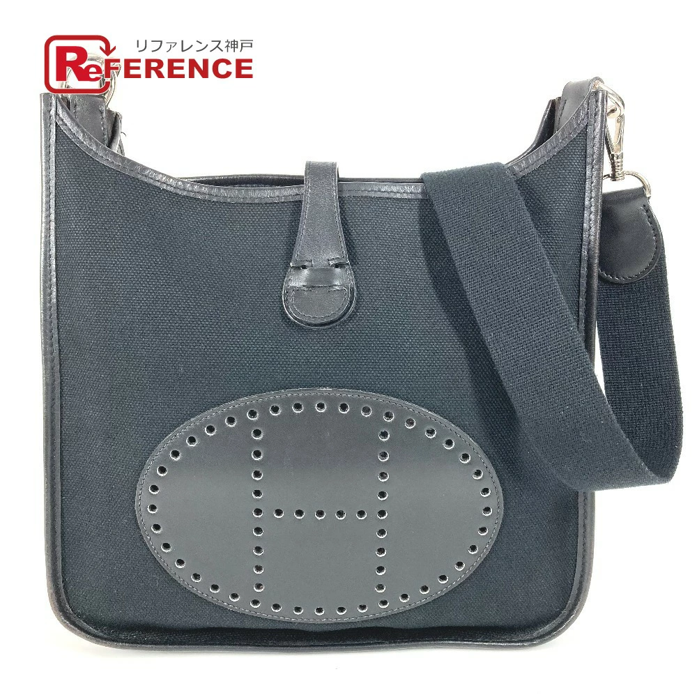 Pre-owned HERMES Evelyne 1 PM shoulder bag in leather/canvas, black.