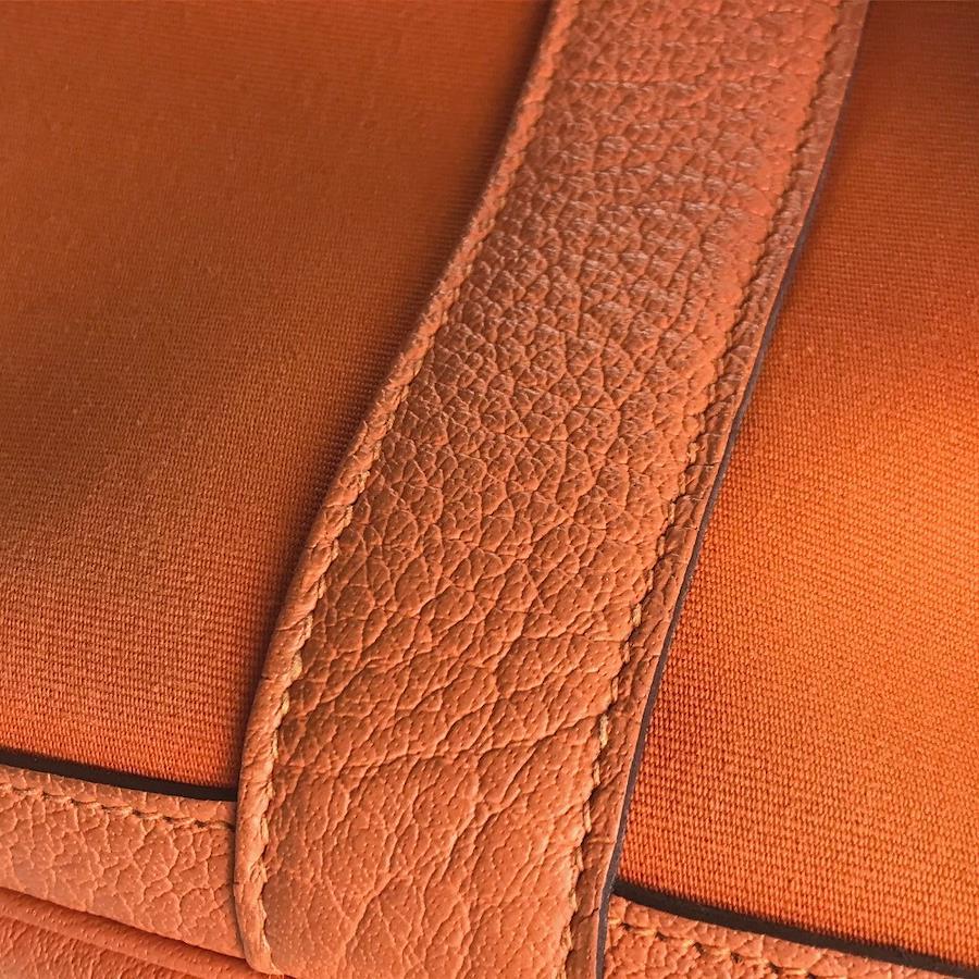 Pre-owned HERMES Garden Party PM shoulder bag/tote bag in Toile Officier leather, women's, in Fou Orange.