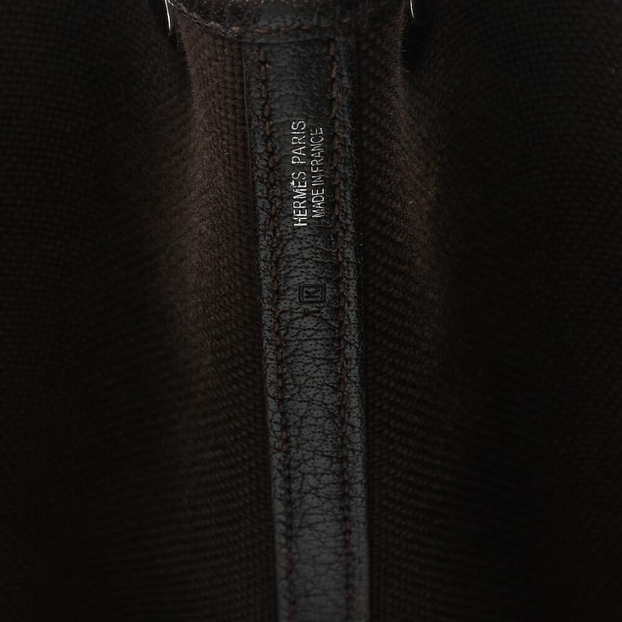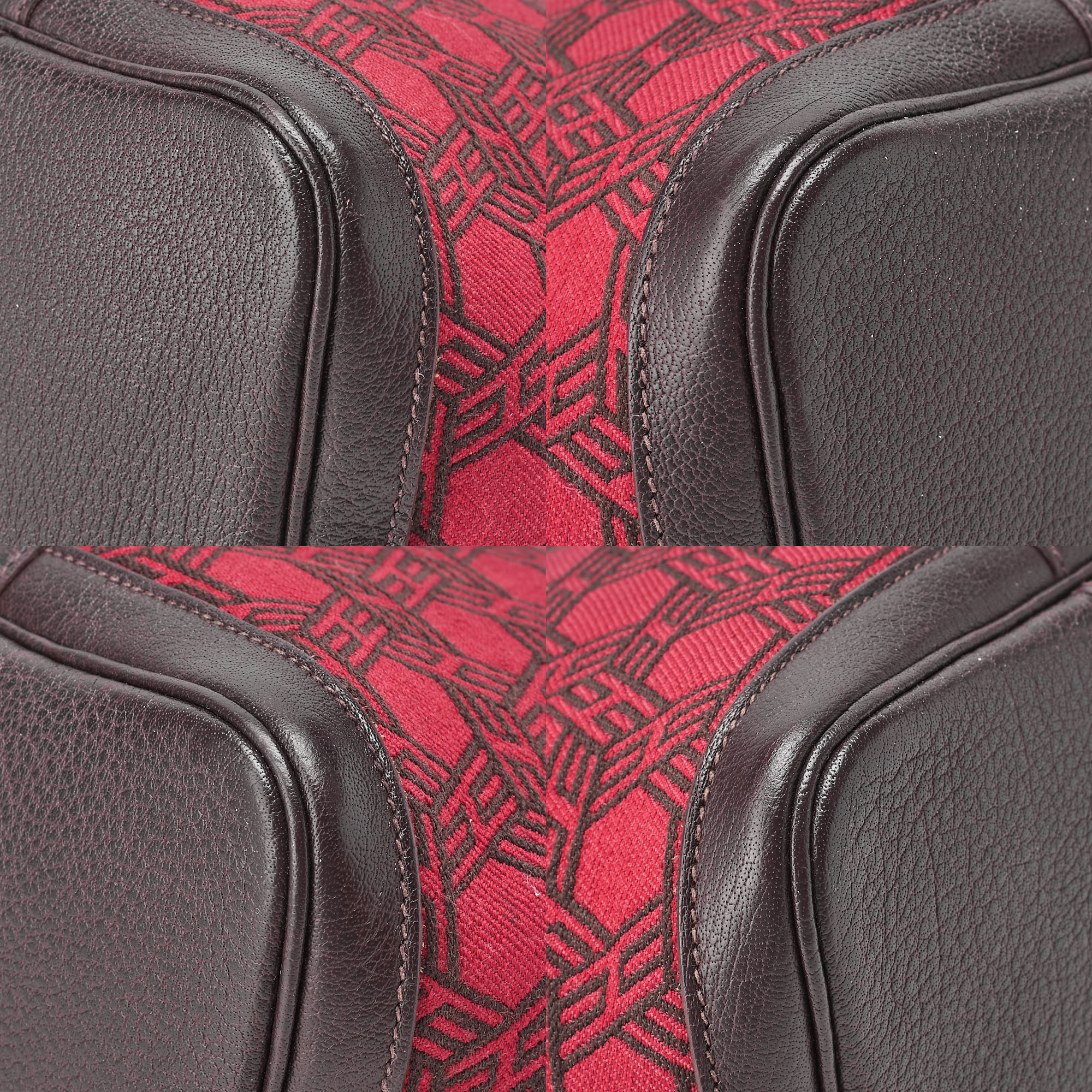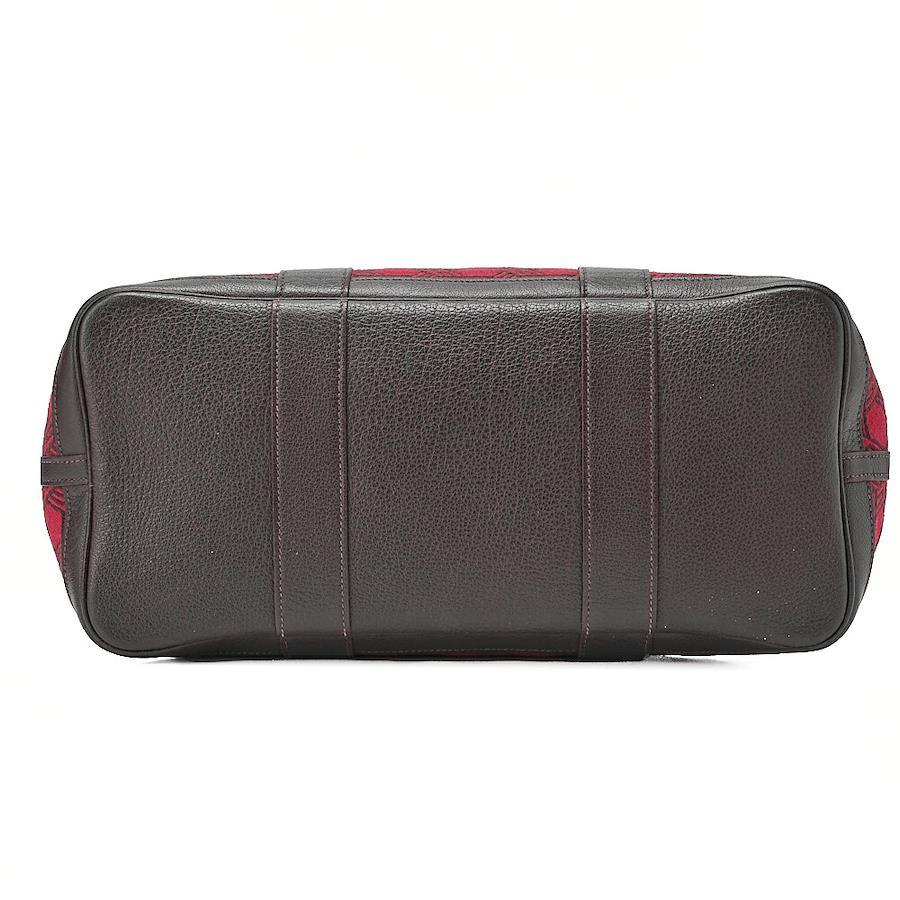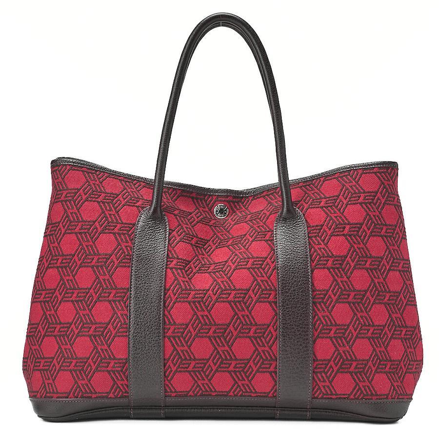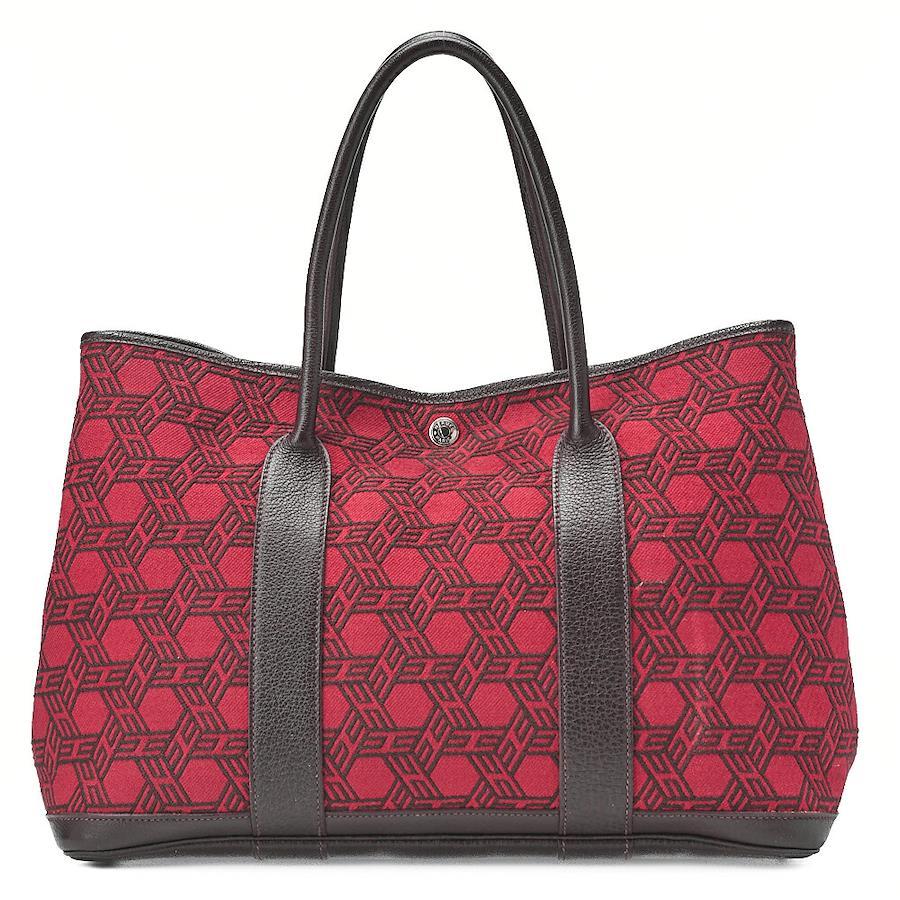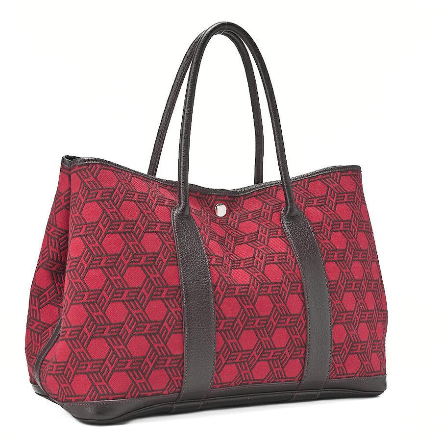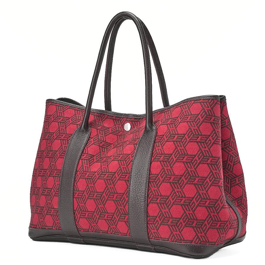 Pre-owned HERMES Garden Party PM Touarçot Ash handbag in red and brown with silver hardware.