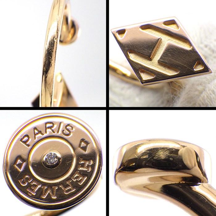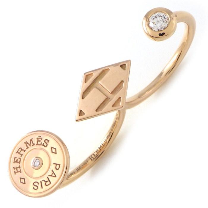 ■商品名HERMES リング ガンバード ダブル Hロゴ 2ポイント ダイヤモンド 計0.11ct K18PG 8.5/10号 / #50 【中古】