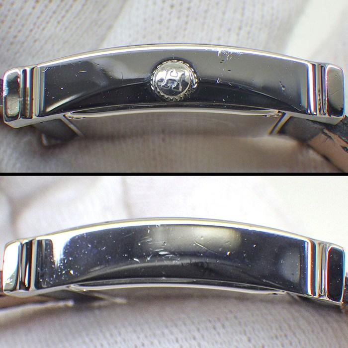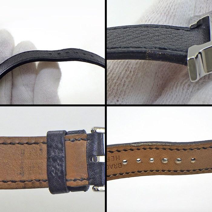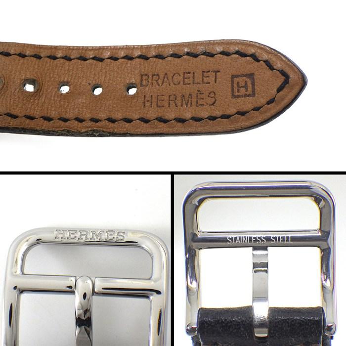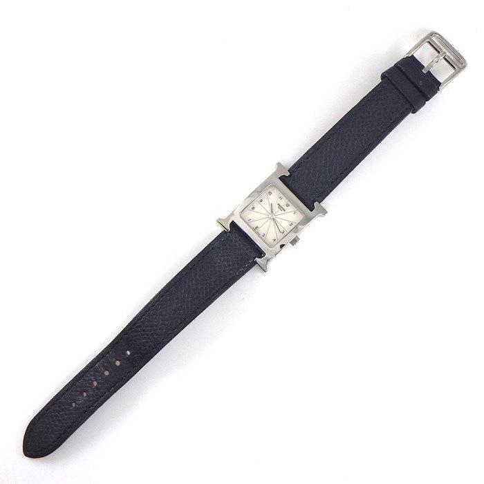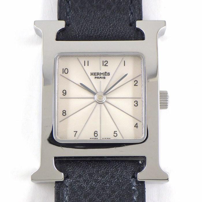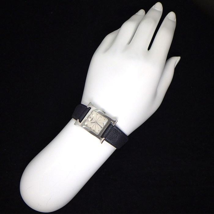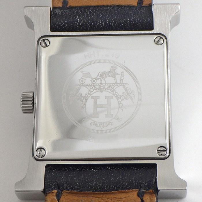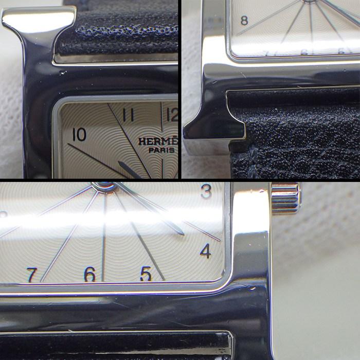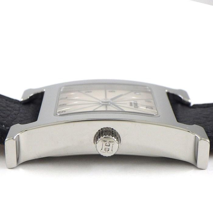 HERMES 腕時計 Hウォッチ PM HH1.210 スクエア アイボリー ヴァーグ ギョーシェ文字盤 SS ブラック レザーベルト クオーツアナログ 【中古】