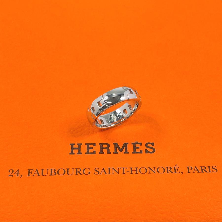 【HERMES】ヘラクレスリング。古代ギリシャ神話の英雄ヘラクレスとエルメスの「H」を重ねた象徴的モチーフが特徴。繊細なカットワークが施され、気品とクラフトマンシップが光るリングです。