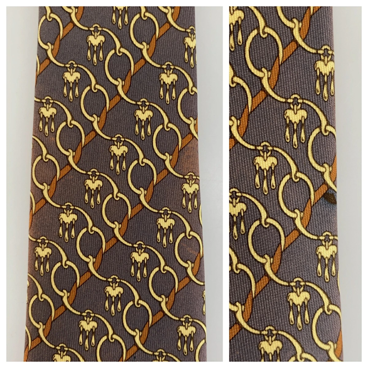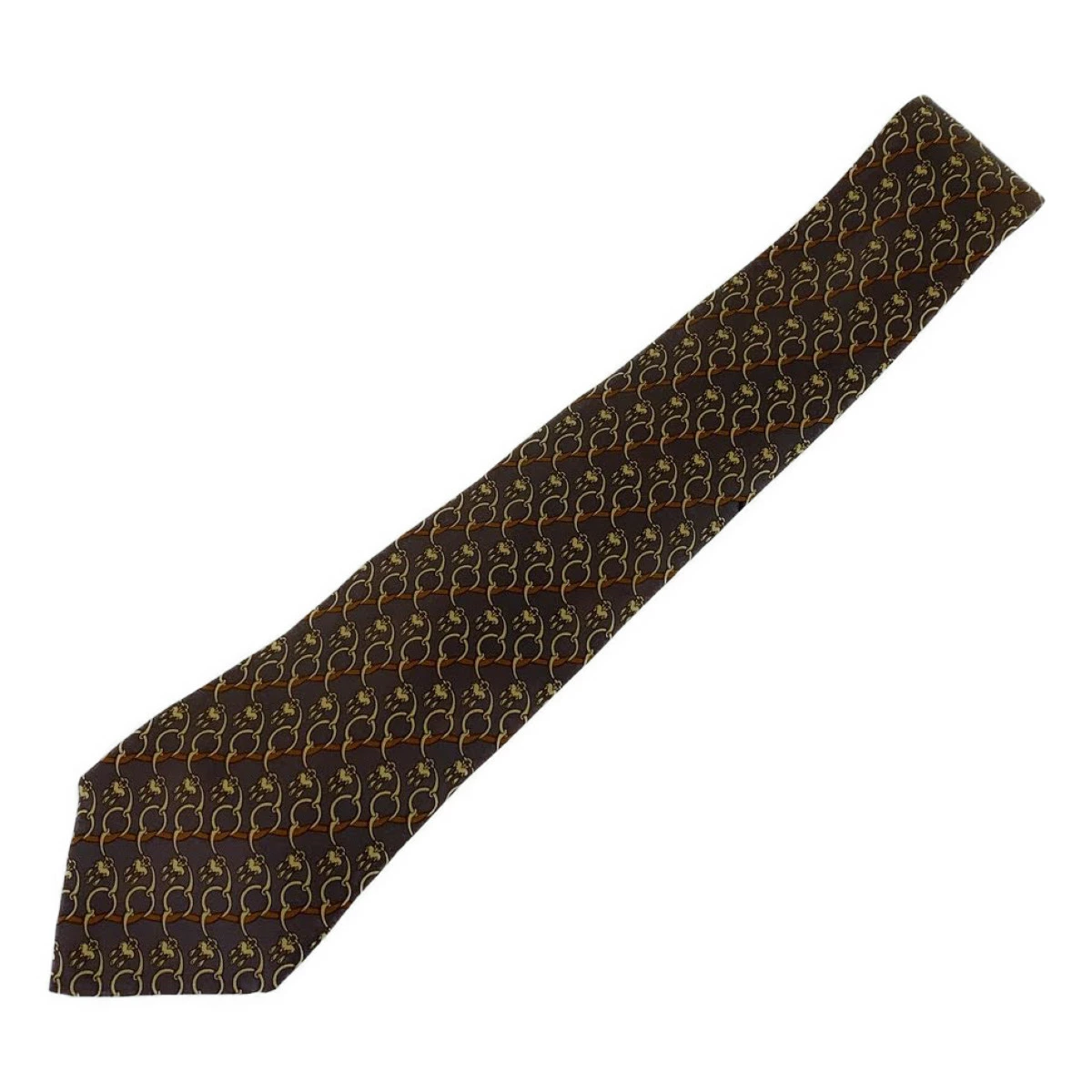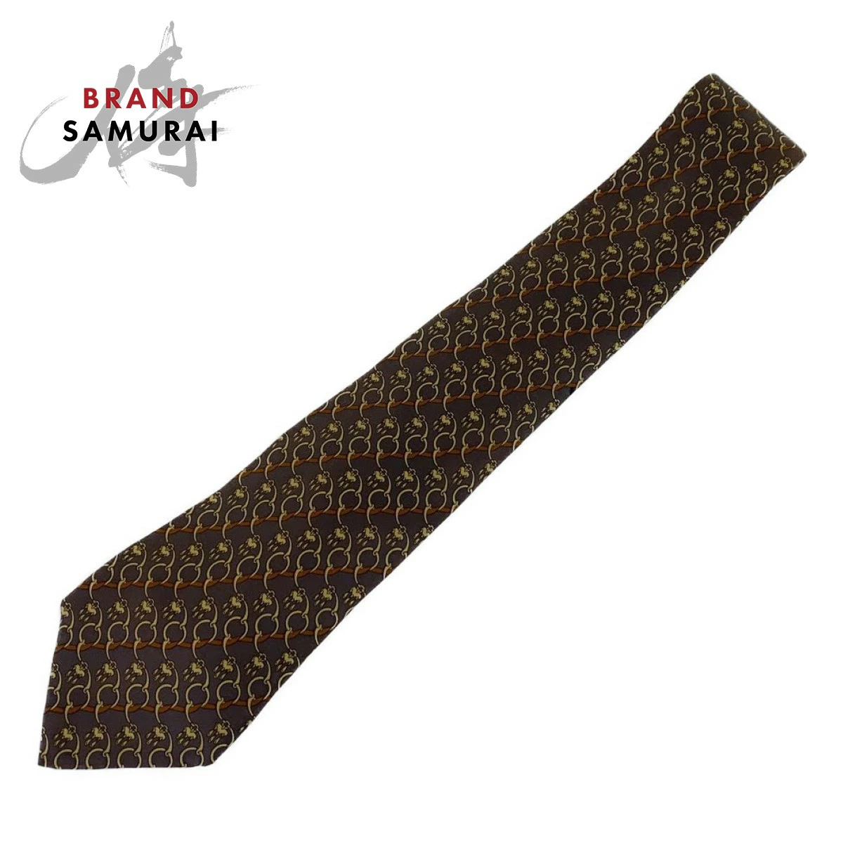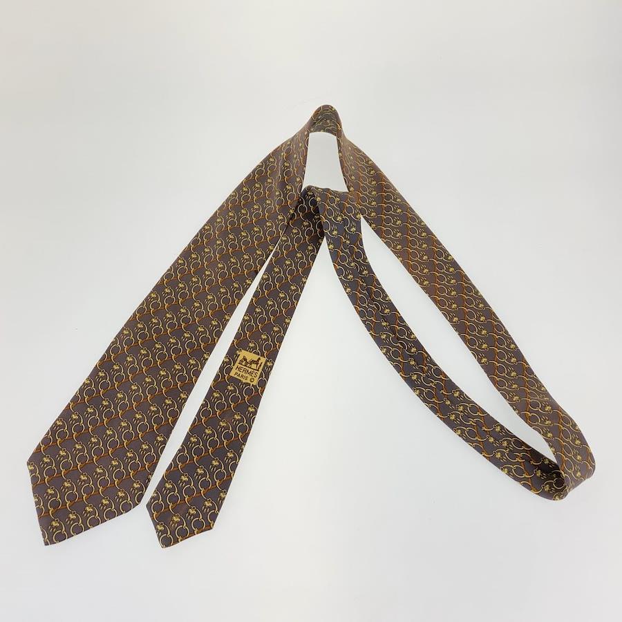 Pre-owned HERMES Horsebit Pattern Dark Purple Silk Tie, 8.5cm Tip, Men's, 300321