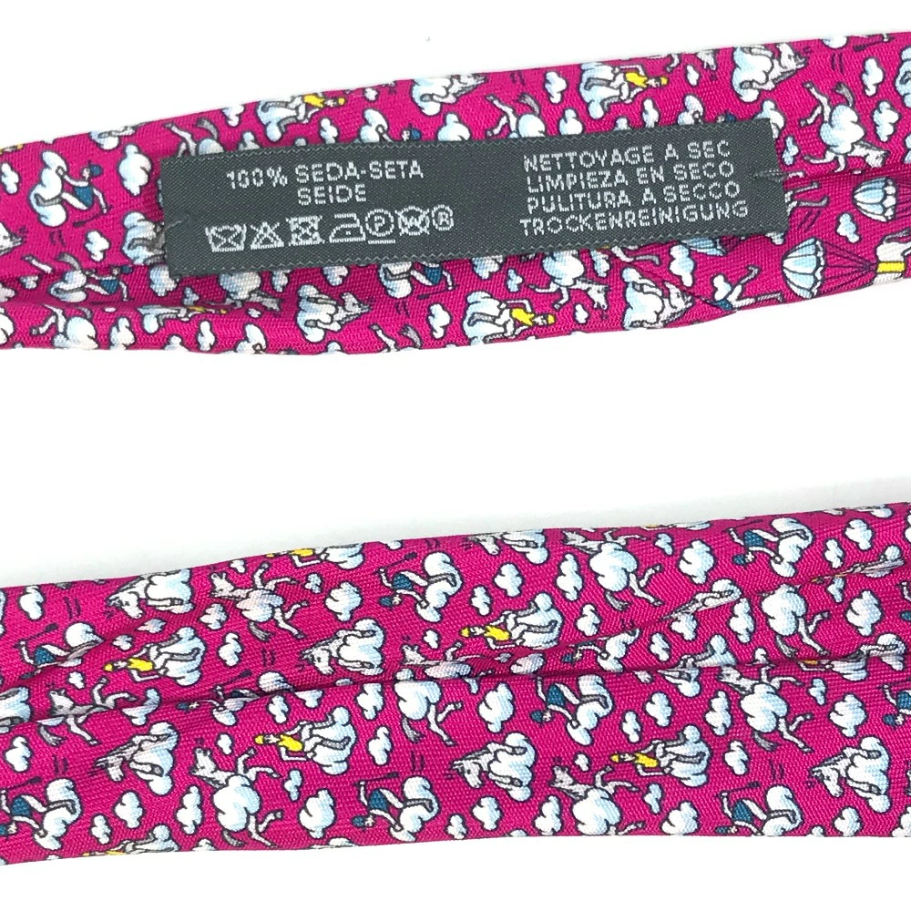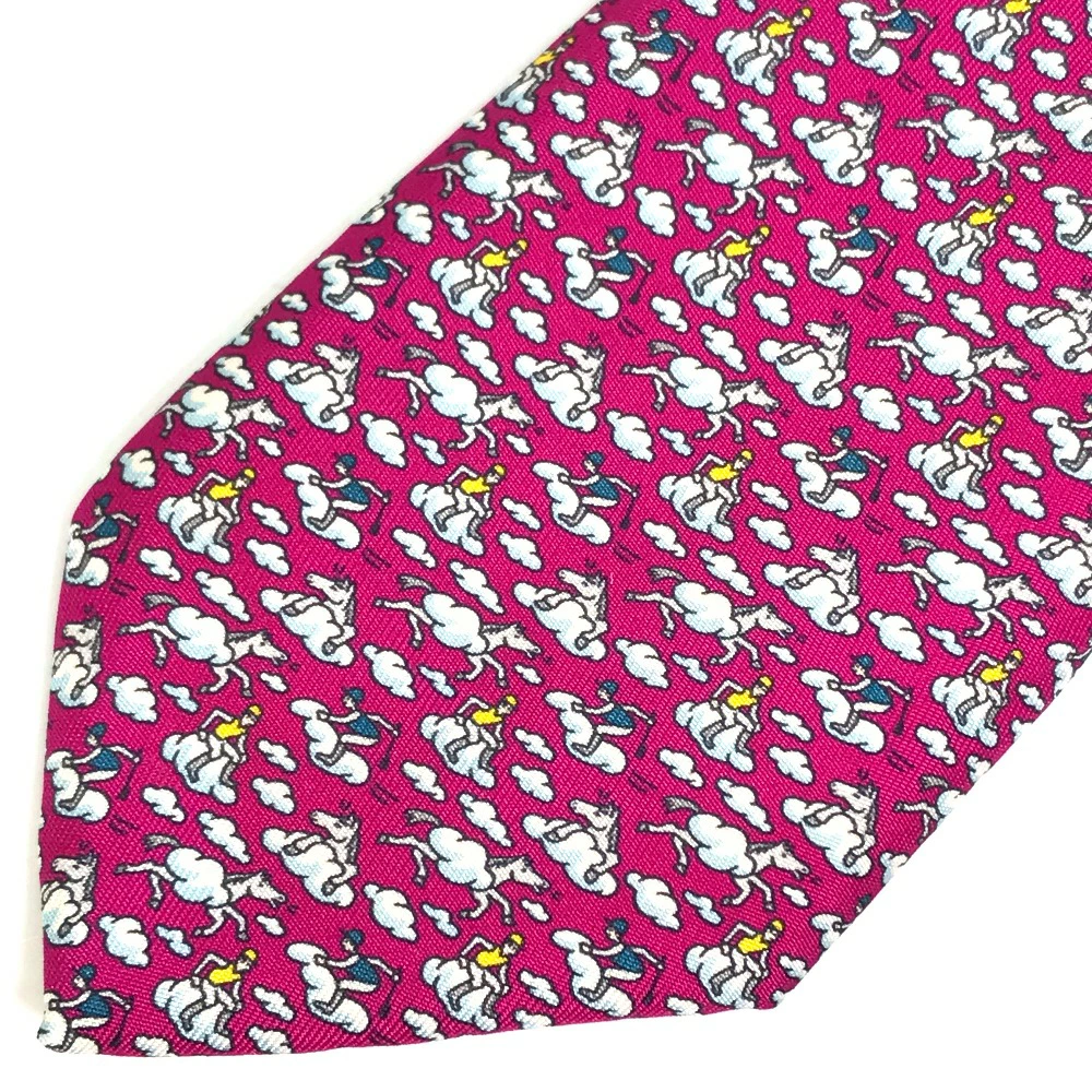 Pre-owned HERMES men's silk tie with a cloud and horse print in purple.