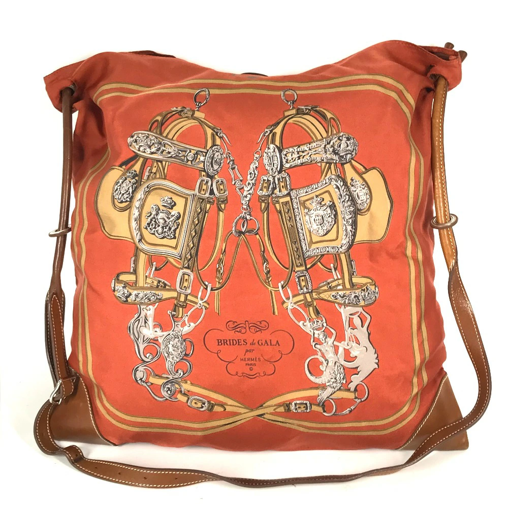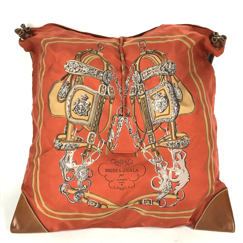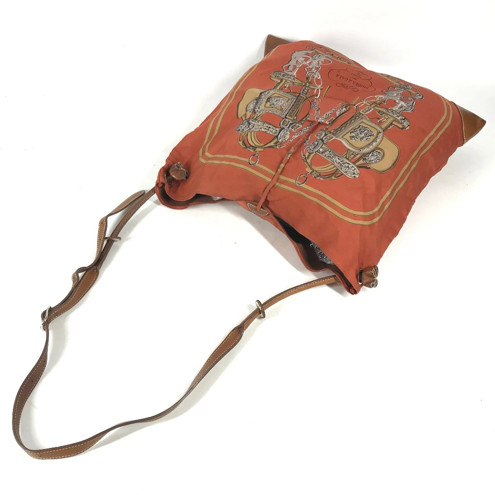 Pre-owned HERMES Silky City PM Shoulder Bag with Pouch, Silk/Leather, Orange.