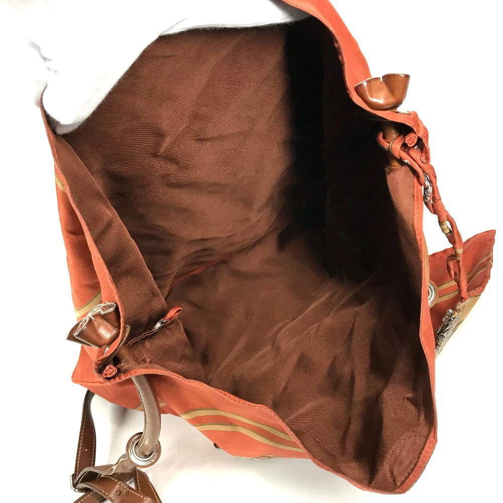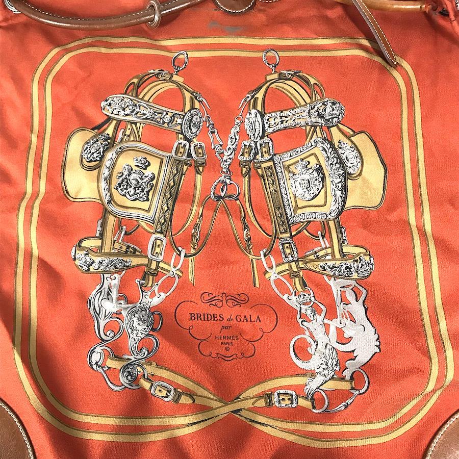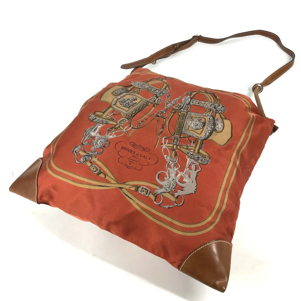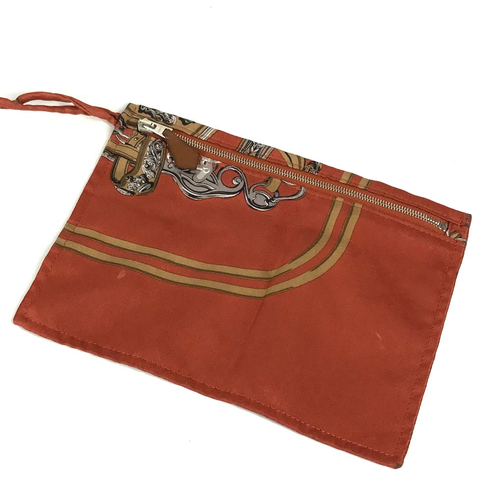 Pre-owned HERMES Silky City PM Shoulder Bag with Pouch, Silk/Leather, Orange.