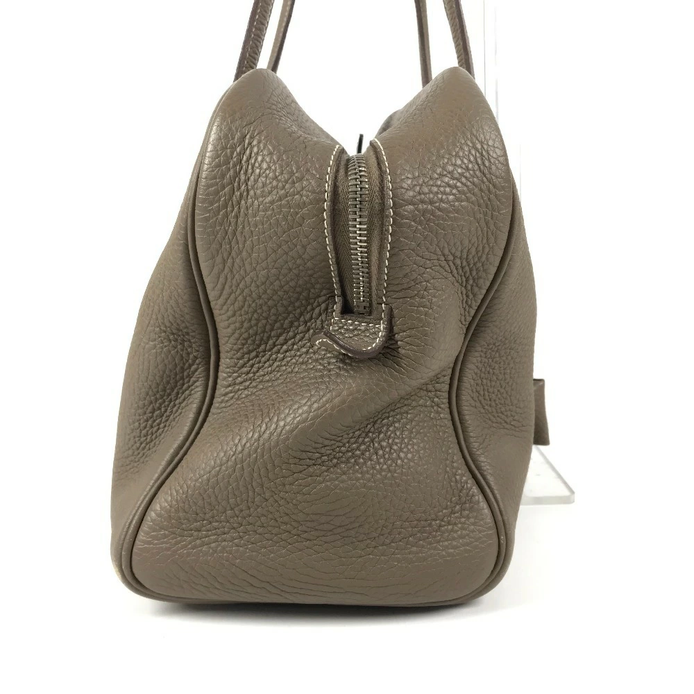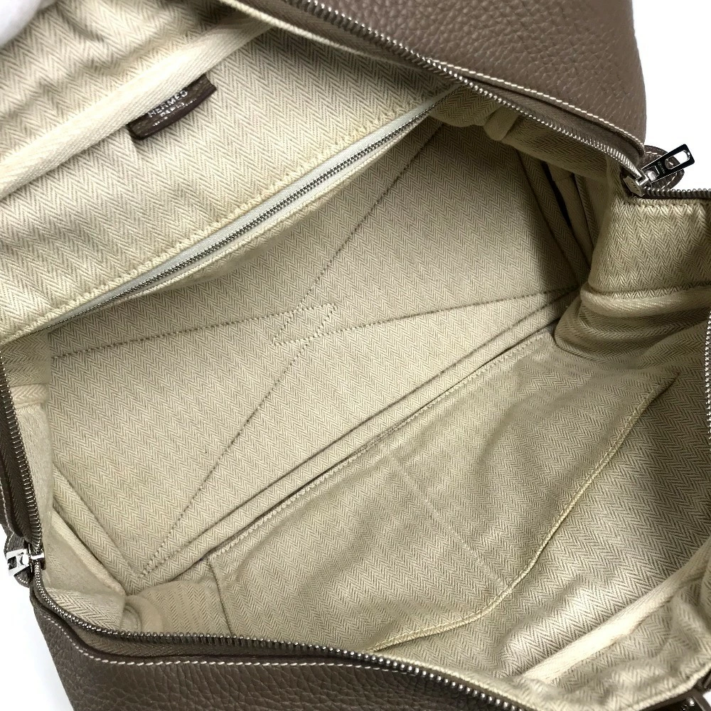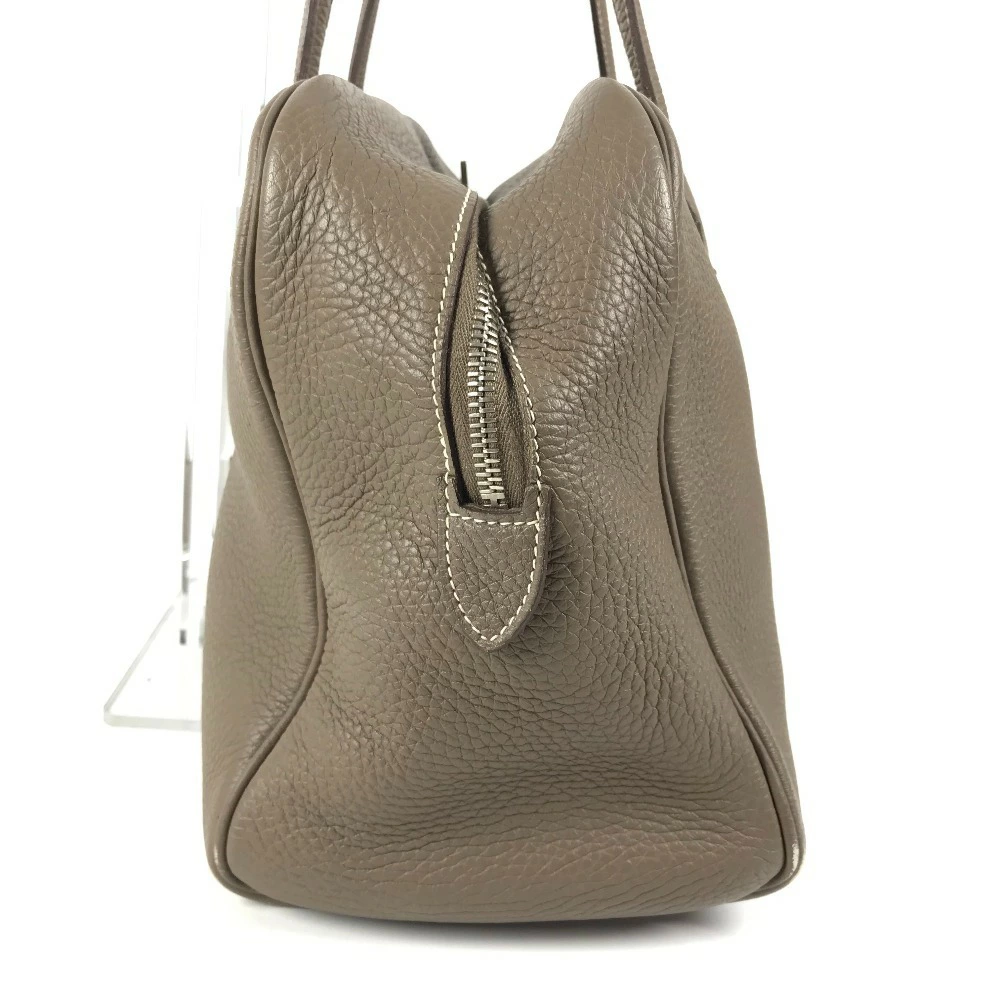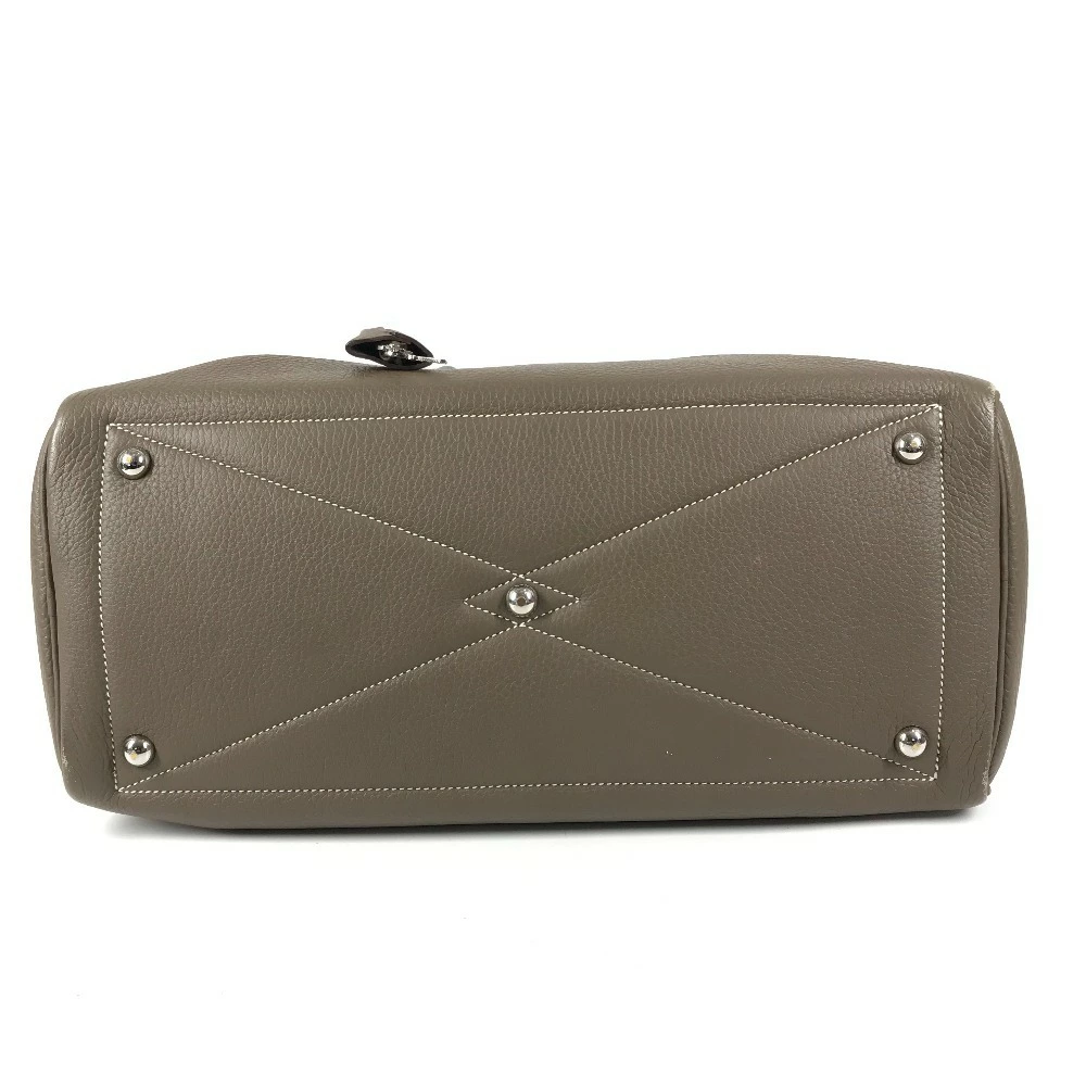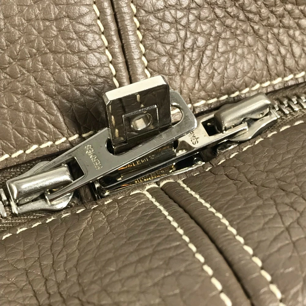 Pre-owned HERMES Victoria 35 shoulder tote bag/Boston bag/shoulder bag in Taurillon Clemence leather with Etoupe and gray accents.