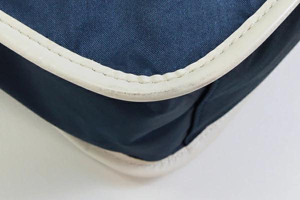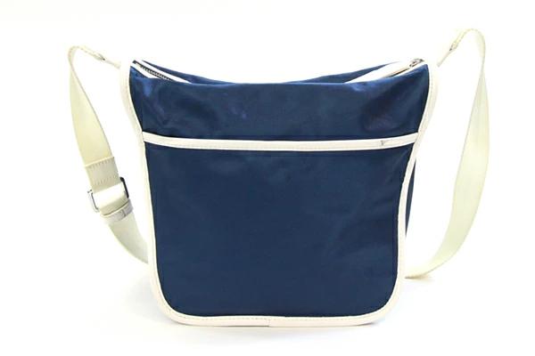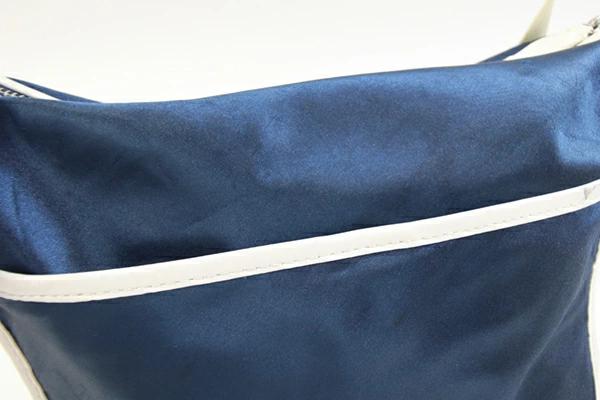 ハンティングワールドショルダーバッグネイビーホワイトサテンレザー中古斜め掛けクロスボディロゴ鞄レディースメンズHUNTINGWORLD