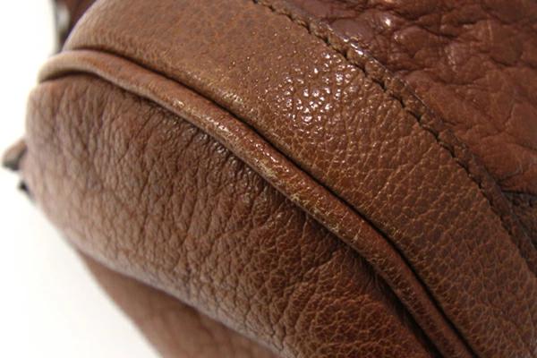 | 状態 | 外側:所々小キズ、スレ、薄汚れあり。フチ(コバ)所々毛羽立ちあり。底面薄シミ汚れいくつかあり。 内側:スレ、薄汚れあり。 金具:小キズ、スレ、クスミあり。 |