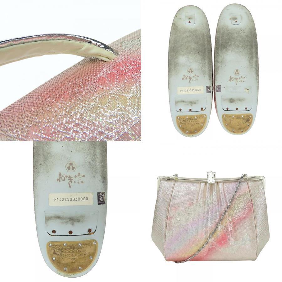 | 品名 | 【中古】 和装バッグ 草履バッグセット 正絹(金銀糸除く) 合成皮革 ピンク シルバー シルバー金具 帯地 フォーマル レディース 女性 |