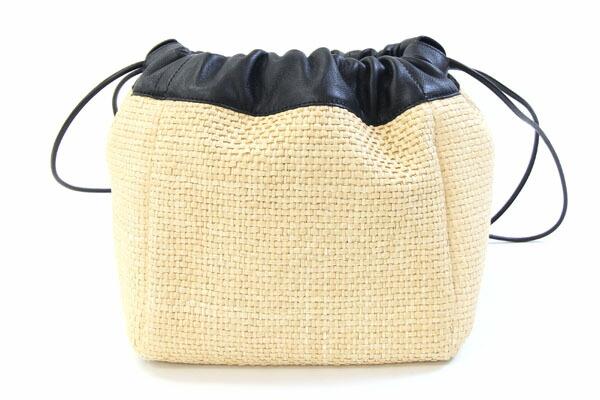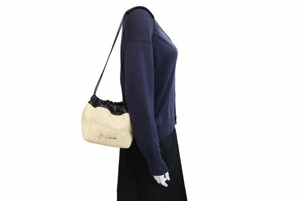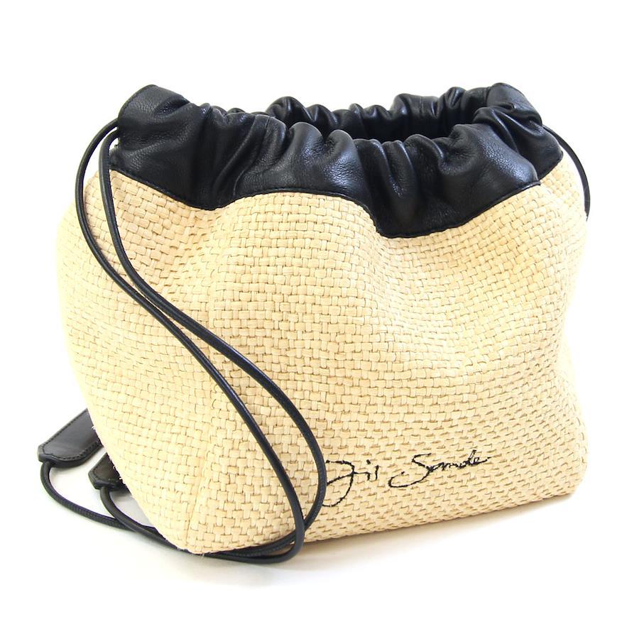 ジルサンダーショルダーバッグドローストリングバッグJSPQ850407ナチュラルブラックラフィアレザー中古肩掛けロゴ刺繍巾着レディースJILSANDER