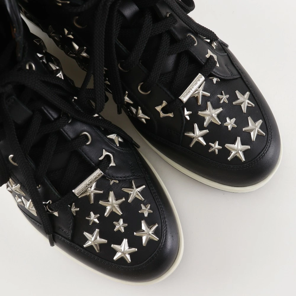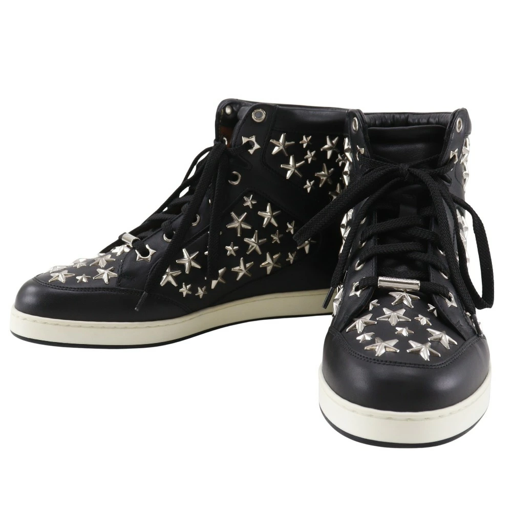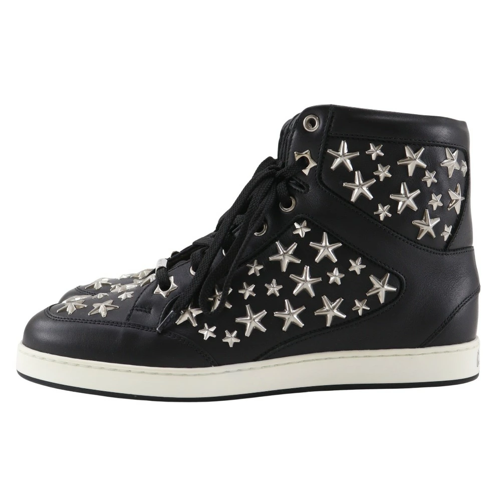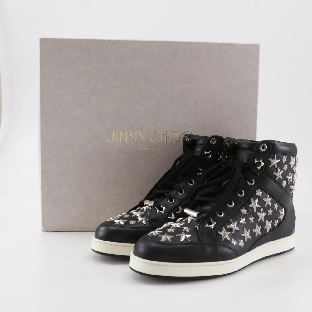 Pre-owned Jimmy Choo Star Studs High-Top Sneakers in Black Leather, Women's, Condition: A+