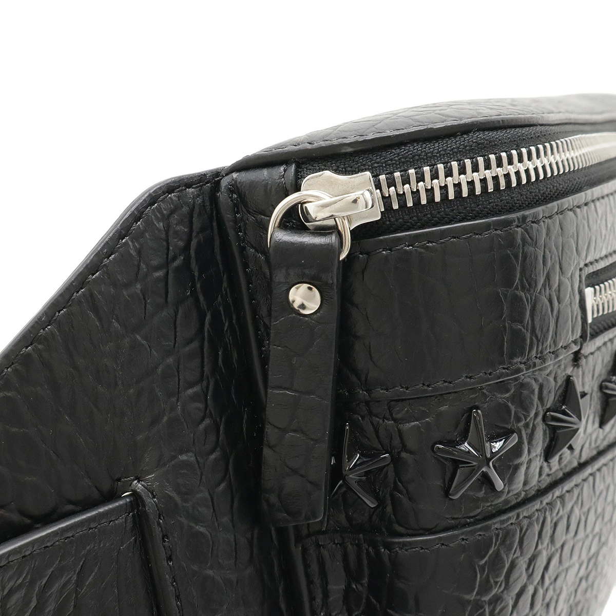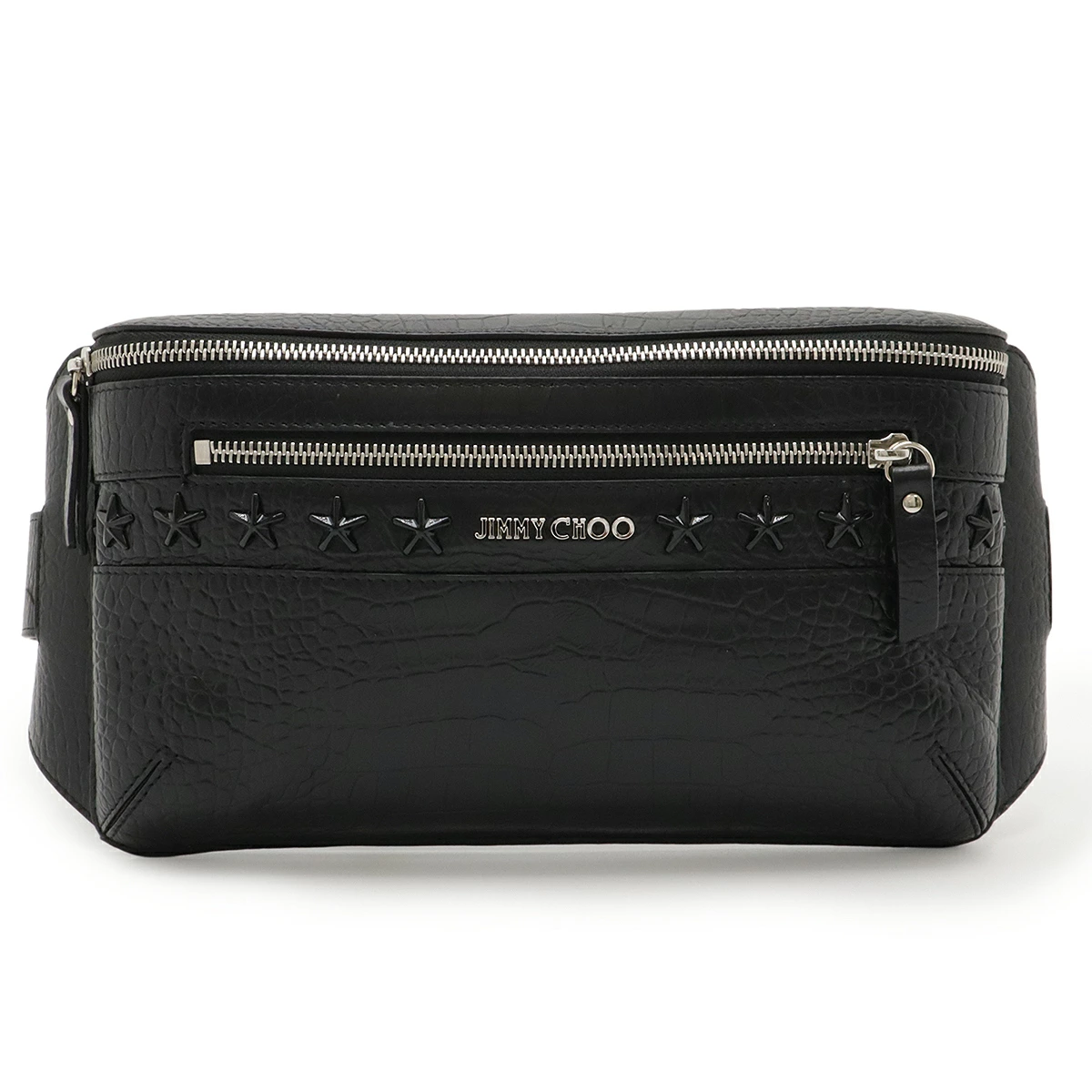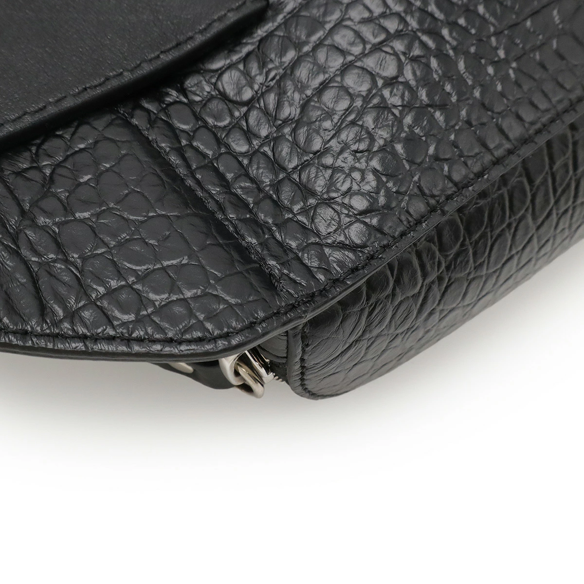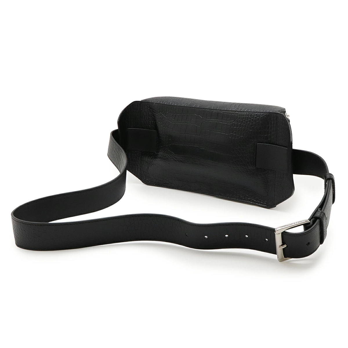 クロコ型押しレザーがスタイリッシュなデザインの上品なウエストバッグでございます。