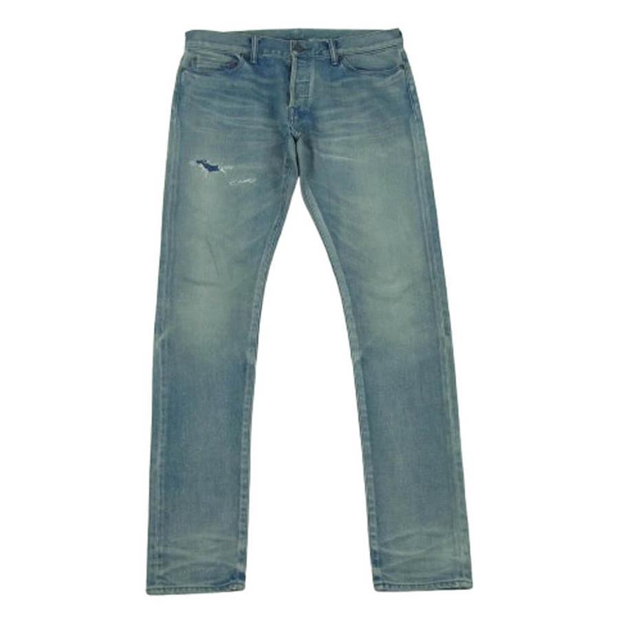 インディゴブルー系【モデル】ボタンフライ ダメージ デニム パンツ コットン ポリウレタン 日本製
