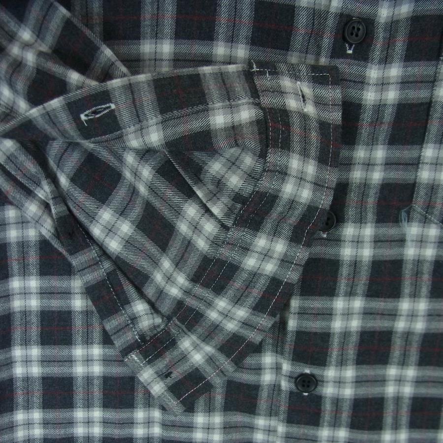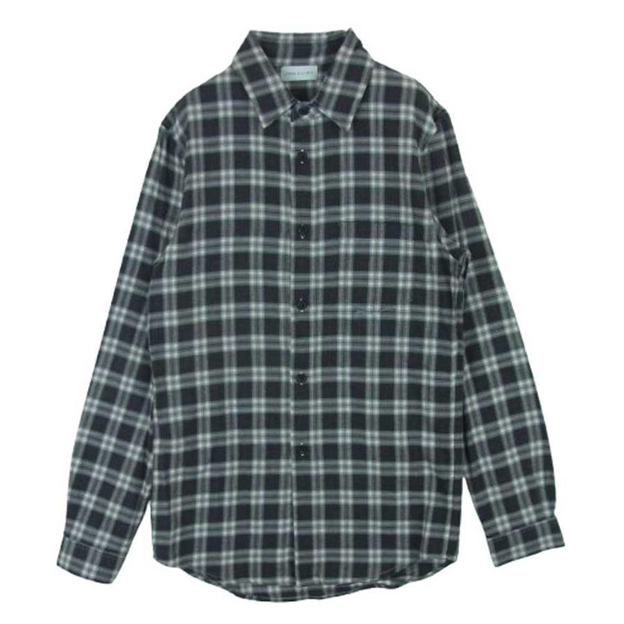 ブラック系 x グレー系【モデル】長袖 チェック ネル シャツ コットン 中国製