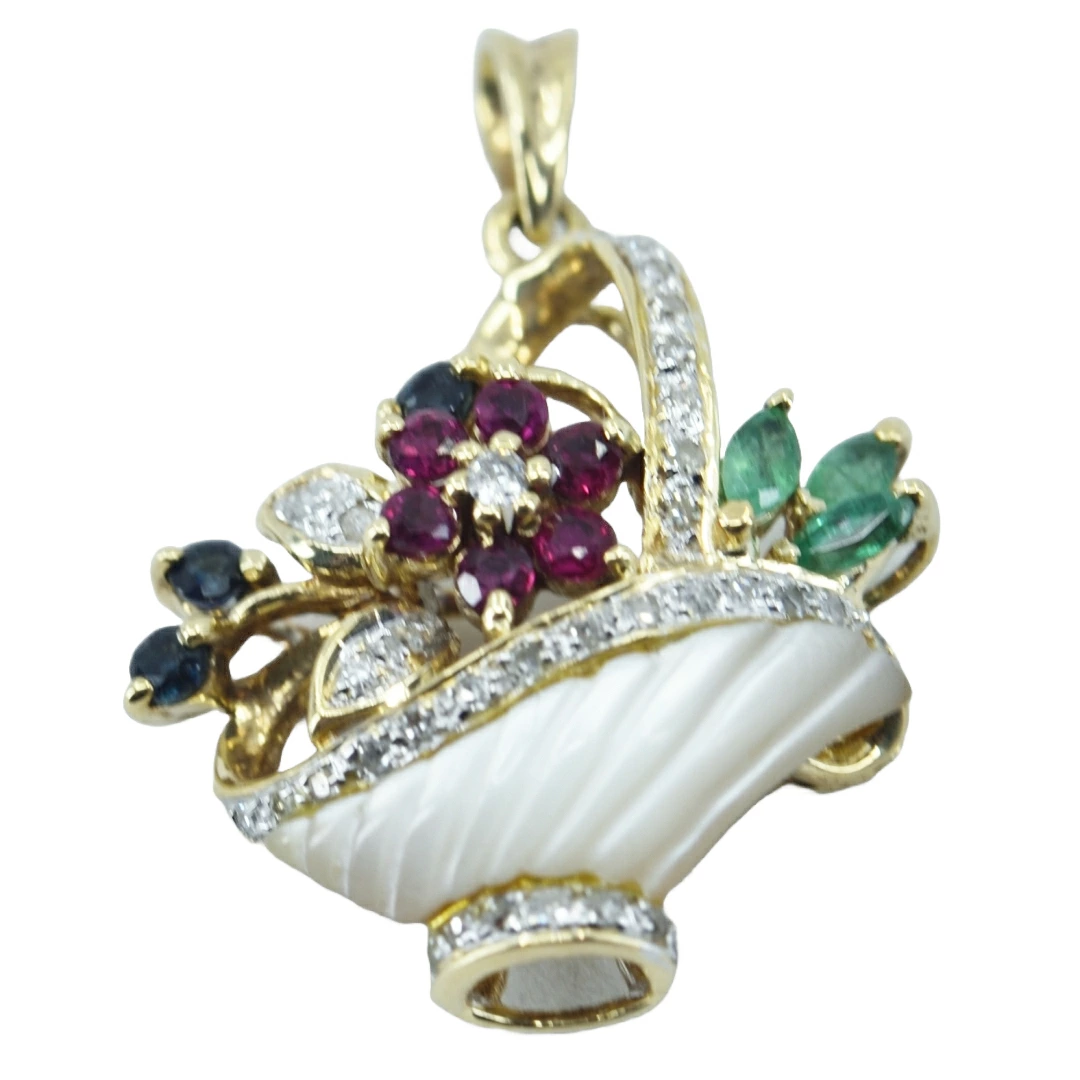| アイテム名 | 【中古】K14 フラワーバケット型ペンダントトップ 色石付 |