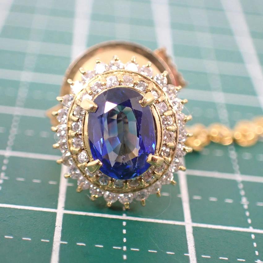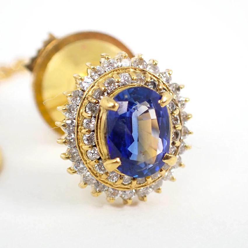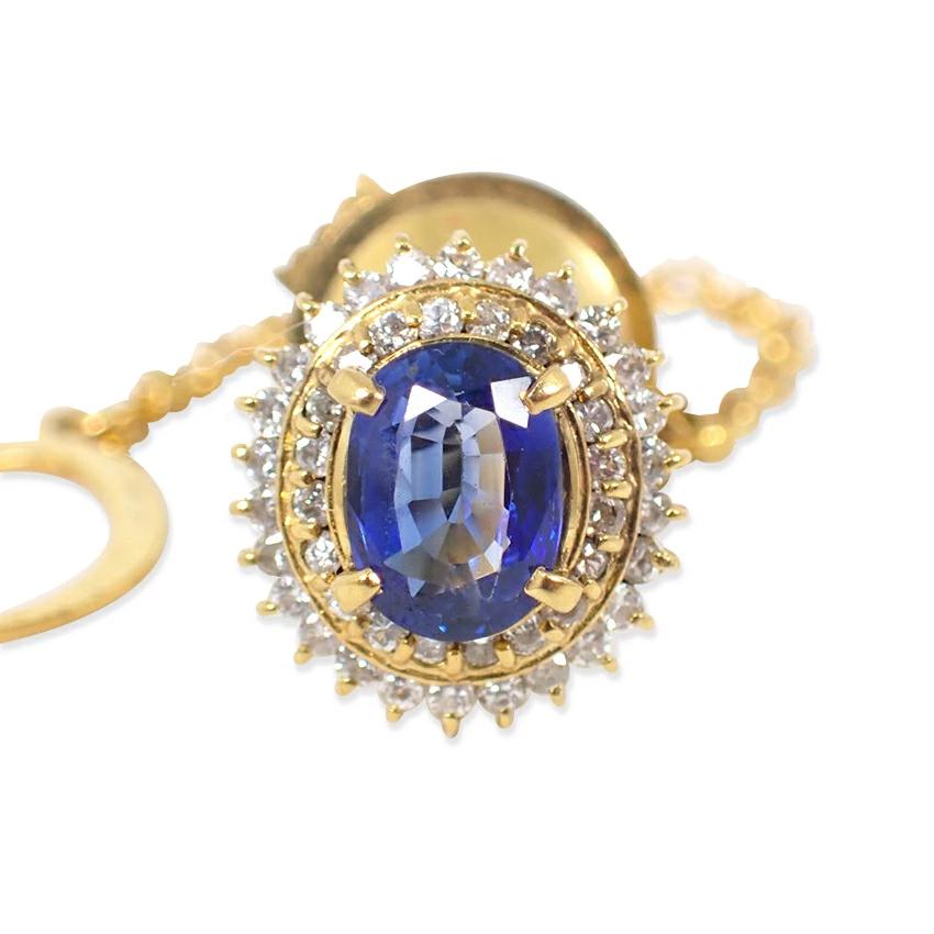 18K Tie Clip: This unique tie clip features a heart-shaped blue sapphire adorned with sparkling diamonds.