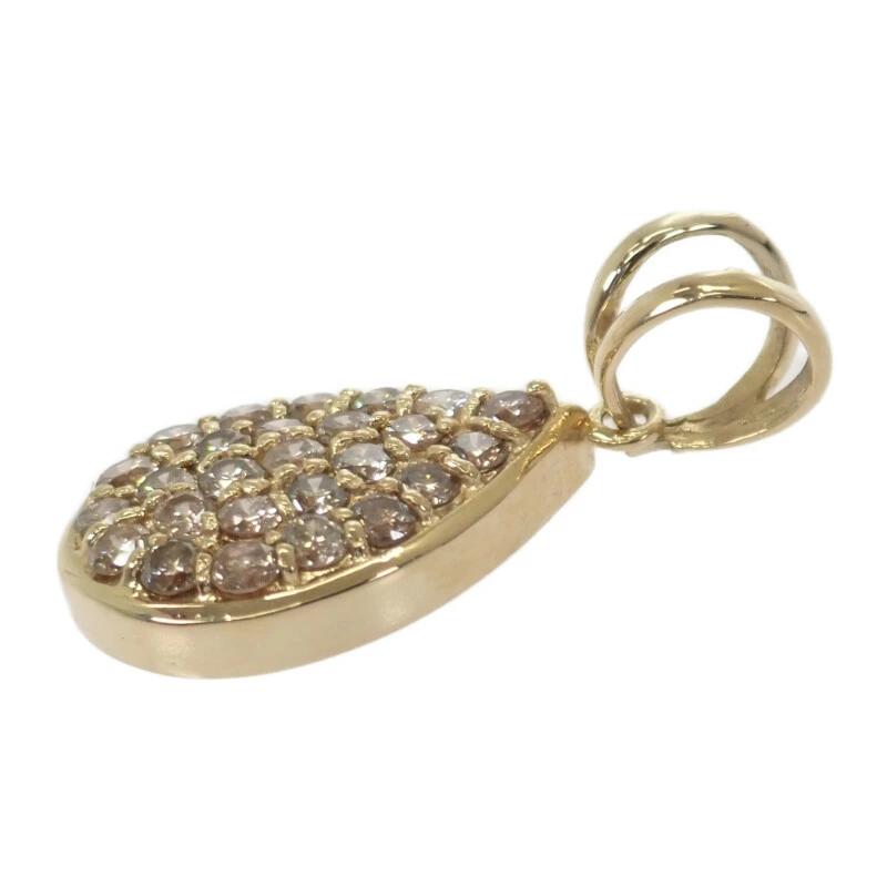 Pre-owned K18 Designer Jewelry Pendant Top in 18k Yellow Gold with 0.50ct Brown Diamond, Drop Motif, and Pavé Diamonds. Women's Accessory. [Rank A]