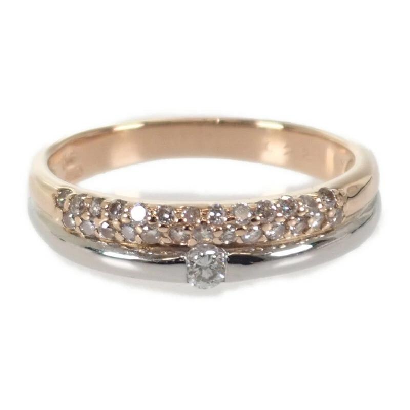 ピンクゴールドとプラチナのシルバーカラーのコンビネーションが印象的なデザインリングです。