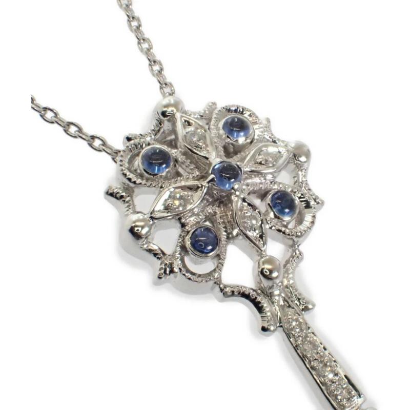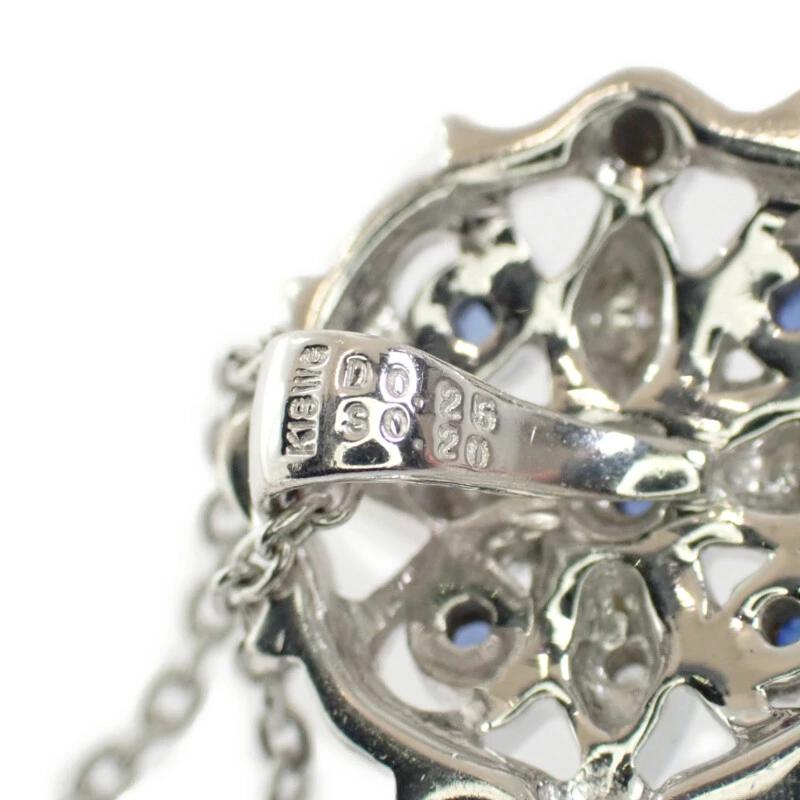 サファイアの深いブルーと、ダイヤモンドが胸元を華やかに彩るネックレス。