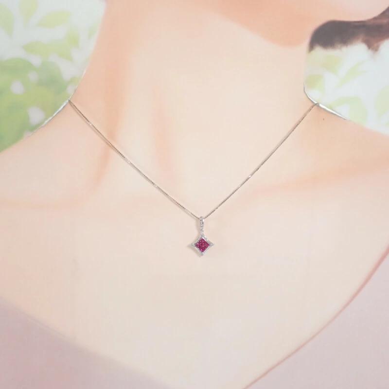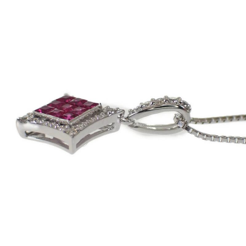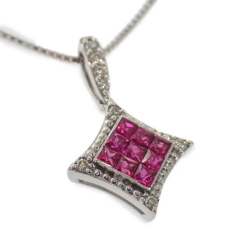 Pre-owned K18WG Designer Jewelry Mystery Setting Ruby Necklace in K18 White Gold with 0.23ct Ruby and Diamonds for Women (Rank A)