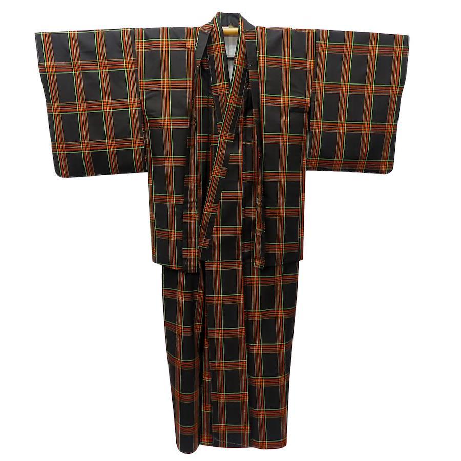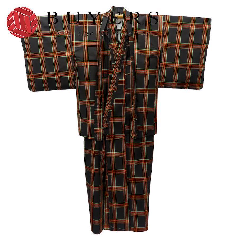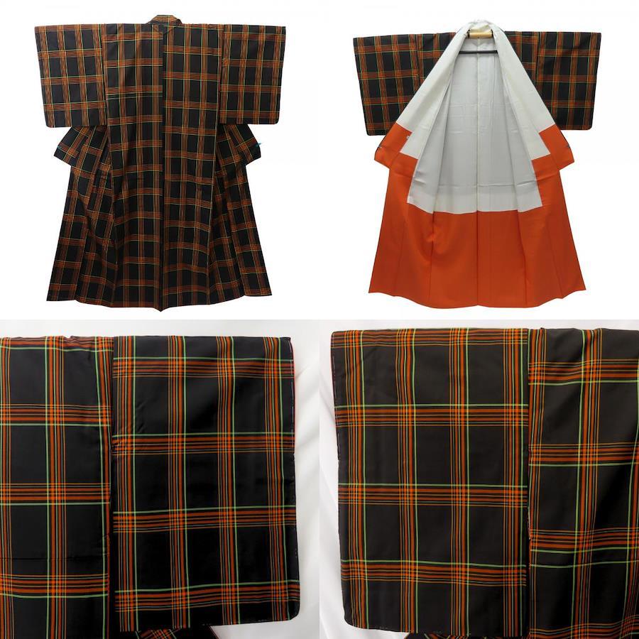 | 品名 | 【中古】 着物セット アンサンブル 正絹 ブラウン オレンジ グリーン 紬 メンズ 男性 |