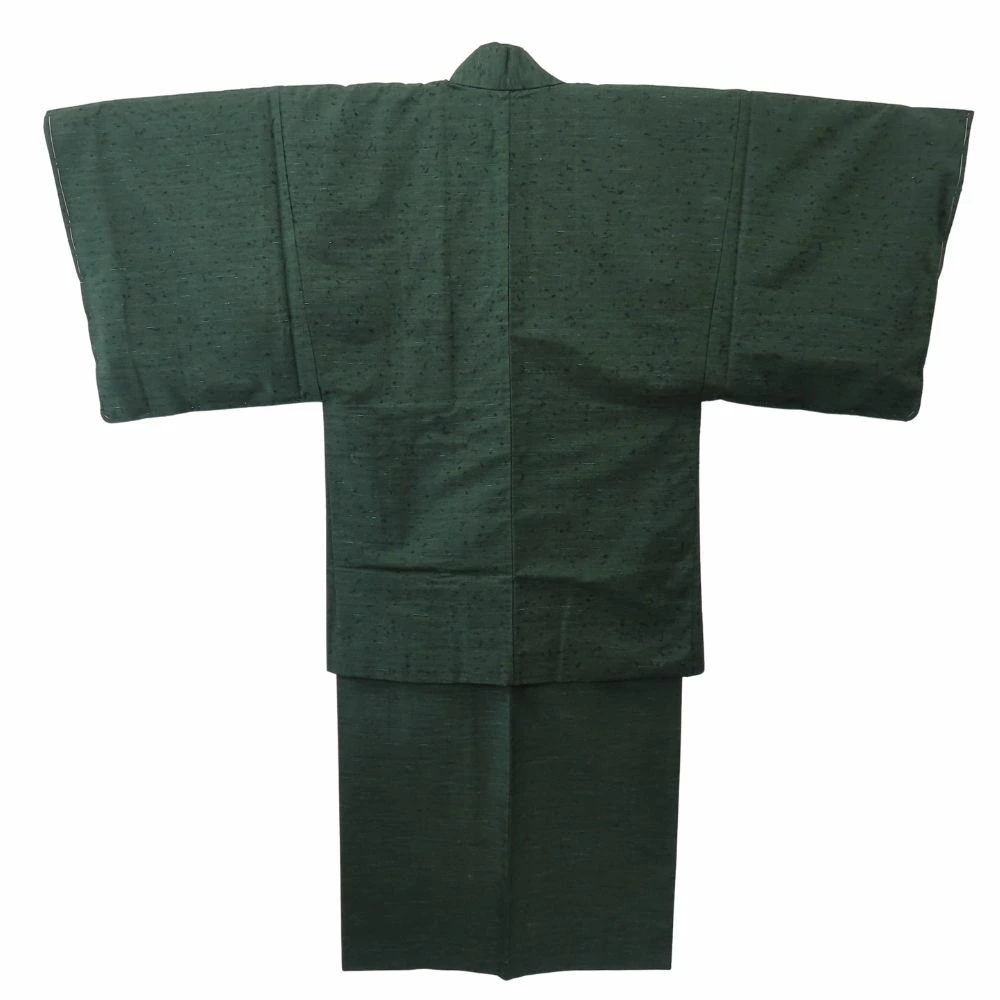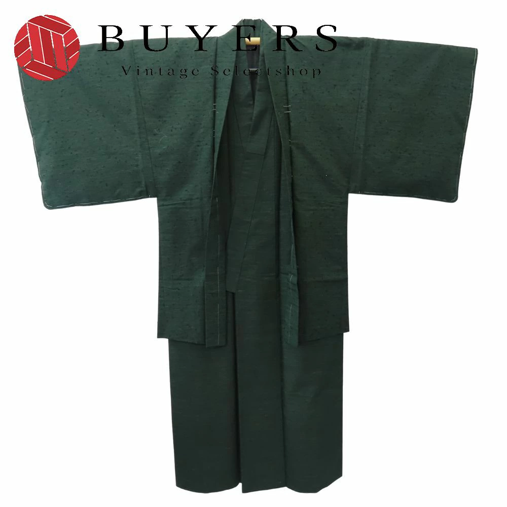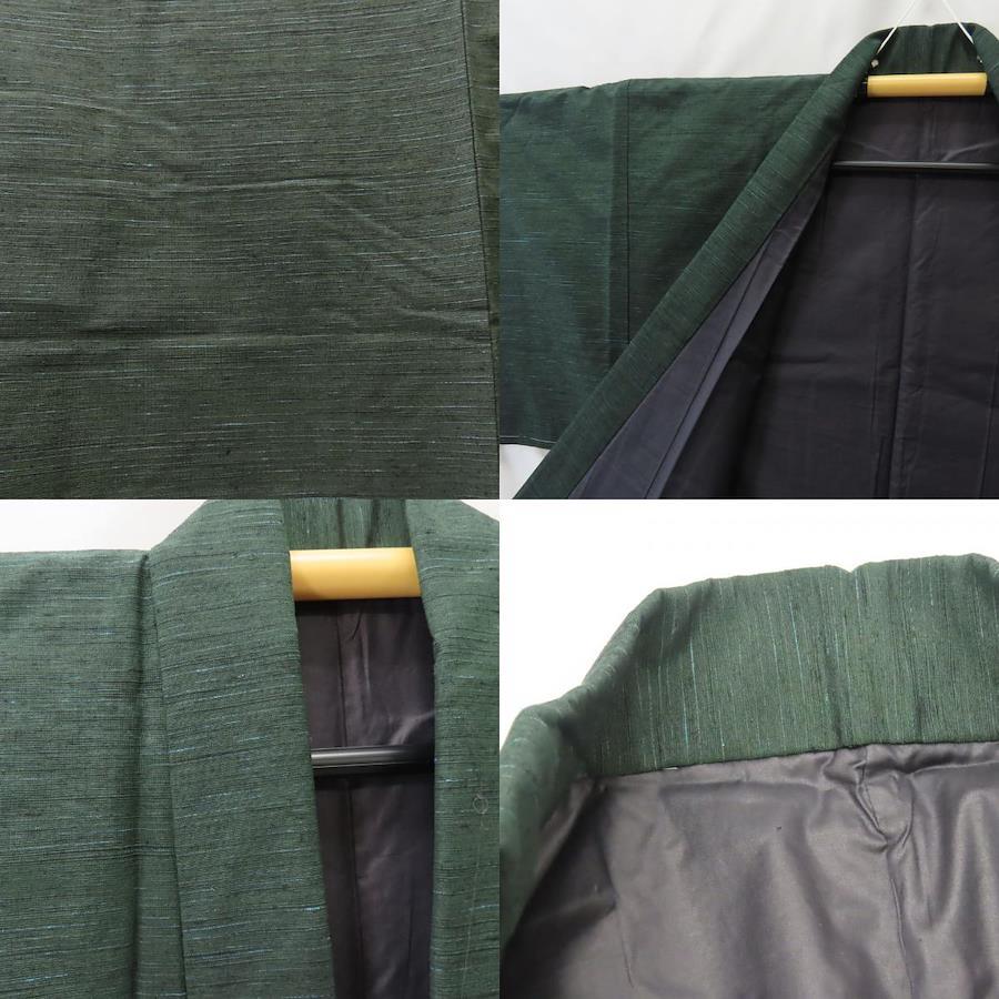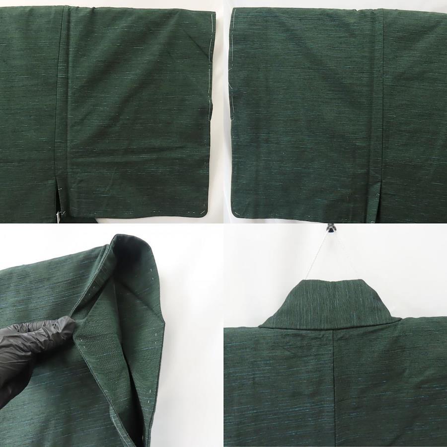 | 品名 | 【中古】 着物セット ひげ紬 しつけ糸あり 正絹(金銀糸除く) ダークグリーン 羽織 アンサンブル 鷹 メンズ 男性 |