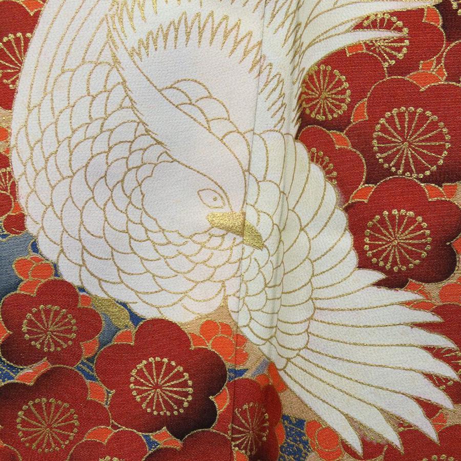 | サイズ | サイズ 袖丈:約 47.5cm 裄丈:約 64cm 肩身丈:163.5cm 前幅:24cm 後幅:29.5cm 図柄:梅に鳥 重量:約1340g |