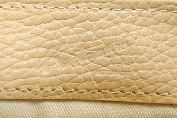 状態:外側:全体的にスレ、所々薄スレヨゴレ・小ヨゴレあり、ベージュ部分には薄黒スレヨゴレもあり。入口のフチにスレあり。ショルダーの付け根部分にコーティング割れあり。内側:スレ、薄汚れ、シミヨゴレあり。金具:スレ、クスミあり。