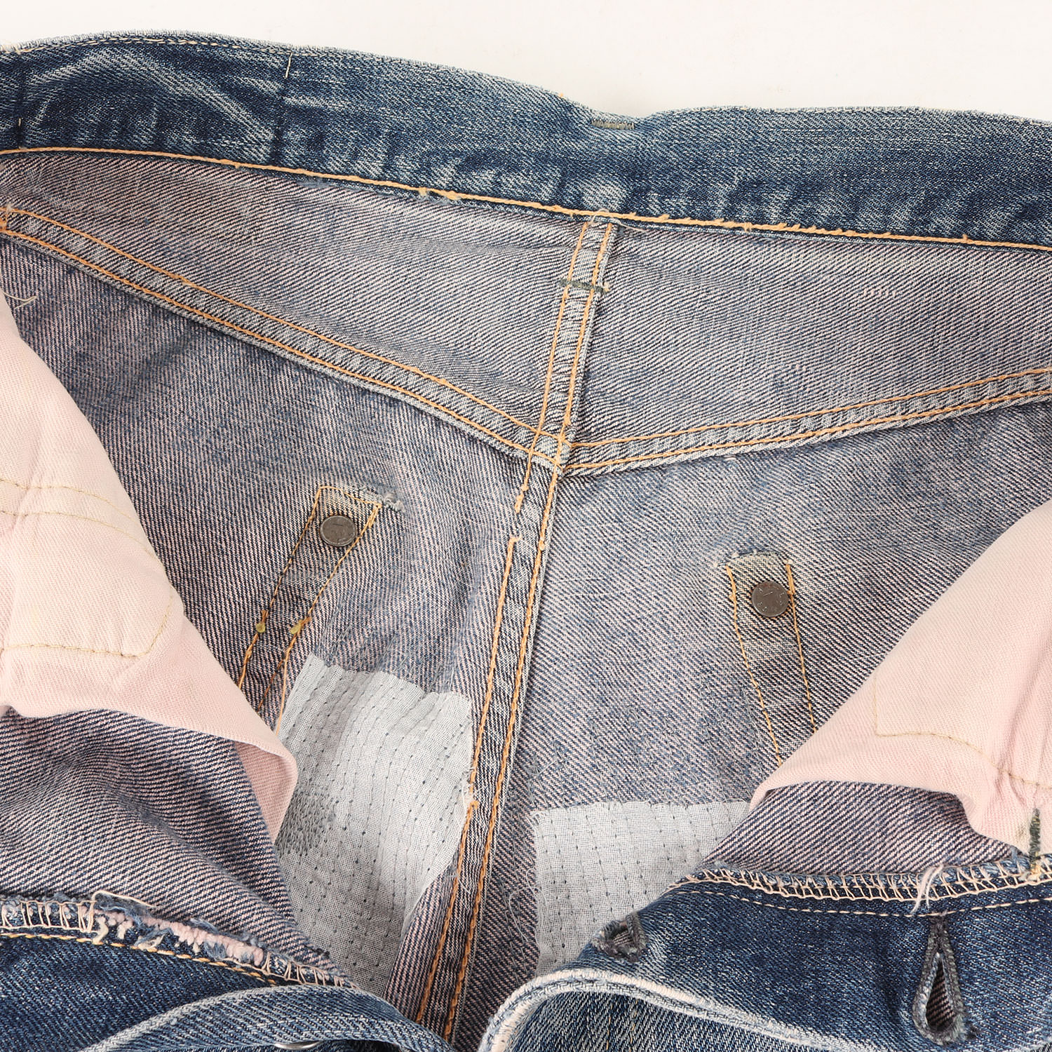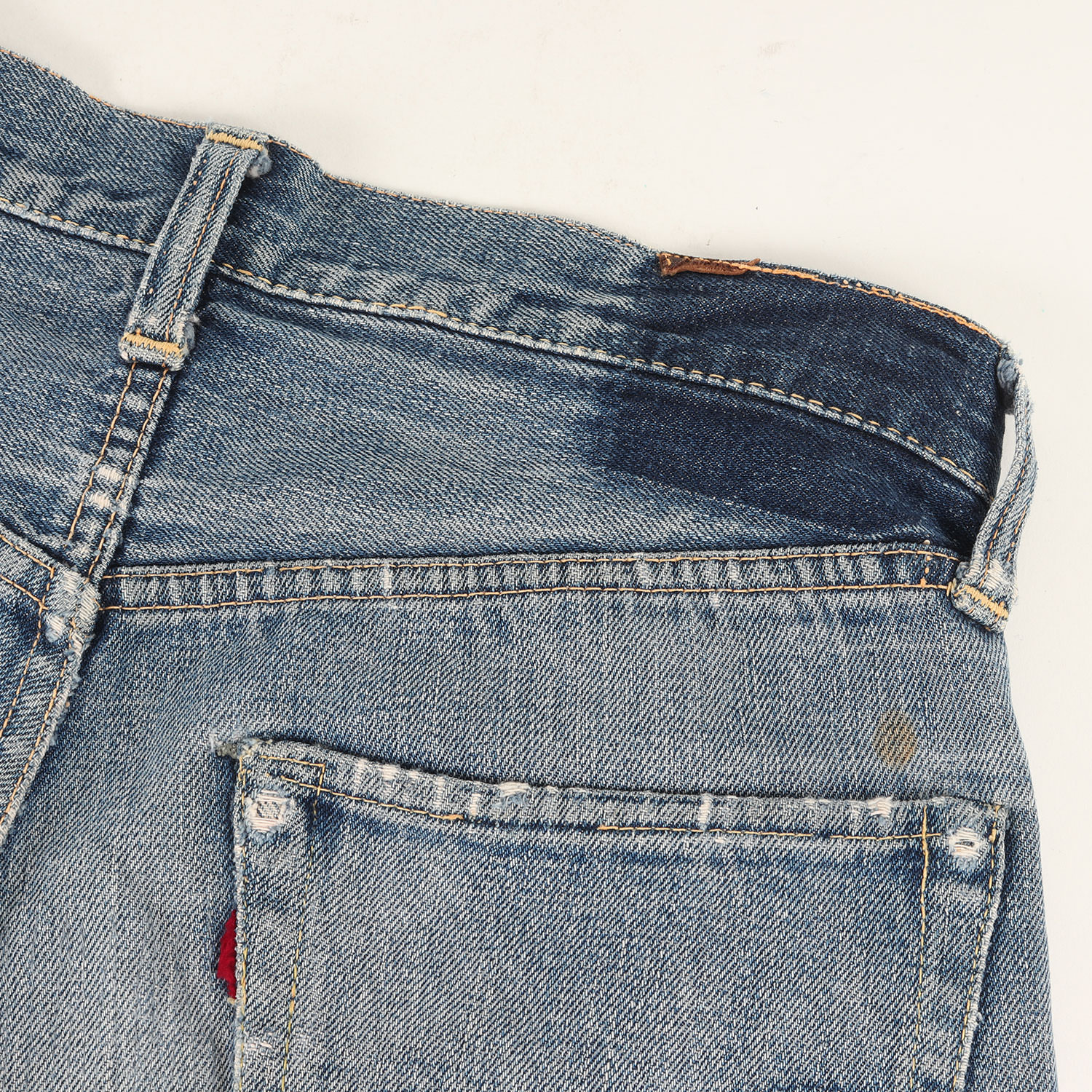 | 商品説明 | ・“503BXX 革パッチ”モデル ・革パッチ(欠損) ・フライボタン2つ(トップボタン含めて計3つ) ・隠しリベットあり(刻印12) ・銅製リベット ・ボタン裏平の刻印なし ・イエロー&オレンジステッチ ・フロントVステッチ ・ボタンフライ通常R ・ウエスト上 シングルステッチ ・バックセンターループずれ無し(センターセット) ・コインポケット裏 シングルステッチ ・裾チェーンステッチ ・オリジナルレングス |