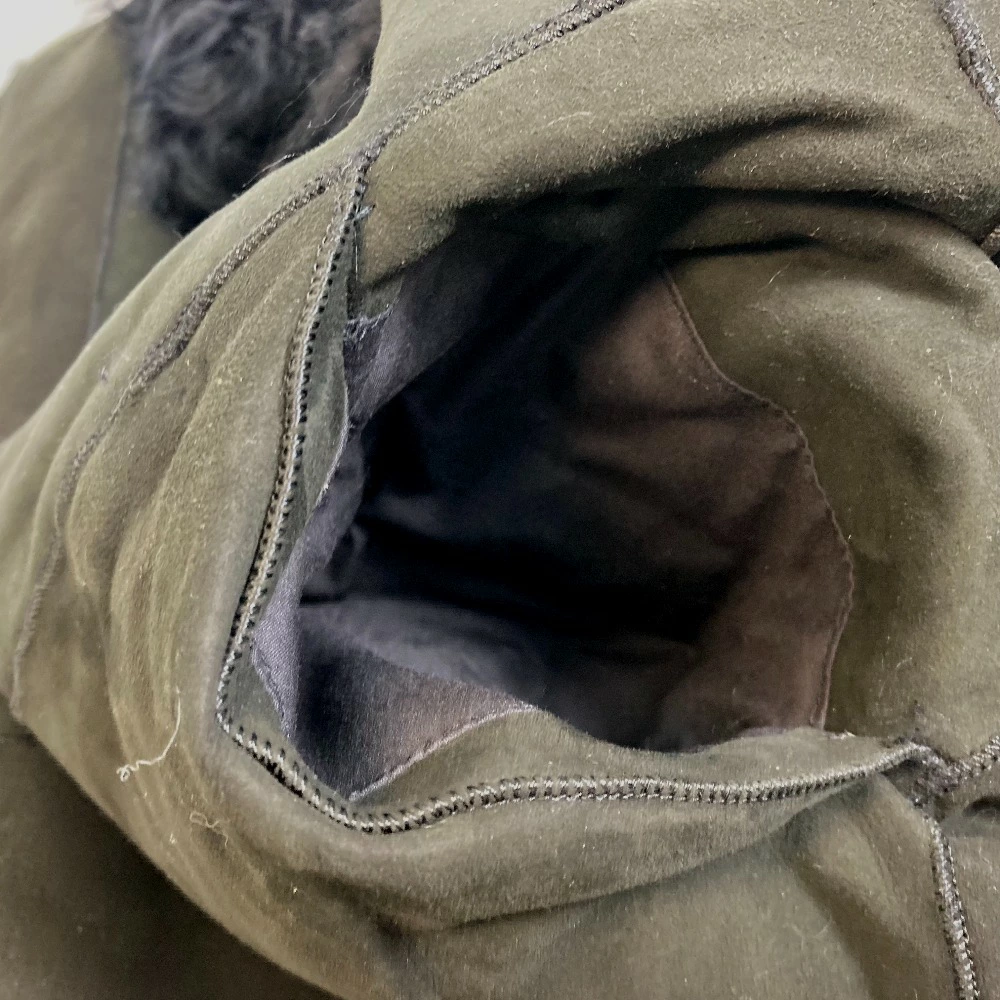 | 状態コメント | 脇下に一部擦り減っている箇所があります。ムートンの縫い目部分に毛が飛び出しています。脇部分に小さい穴があり、ほつれが所々にあります。 |