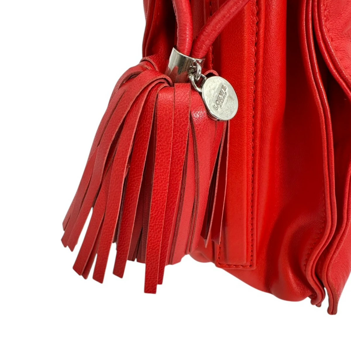 Pre-owned LOEWE 2-Way Leather Shoulder Bag with Tassel, Model 380 82 E17, Red.