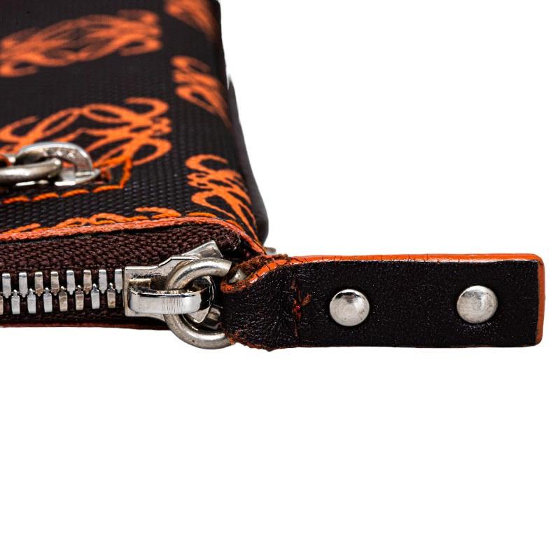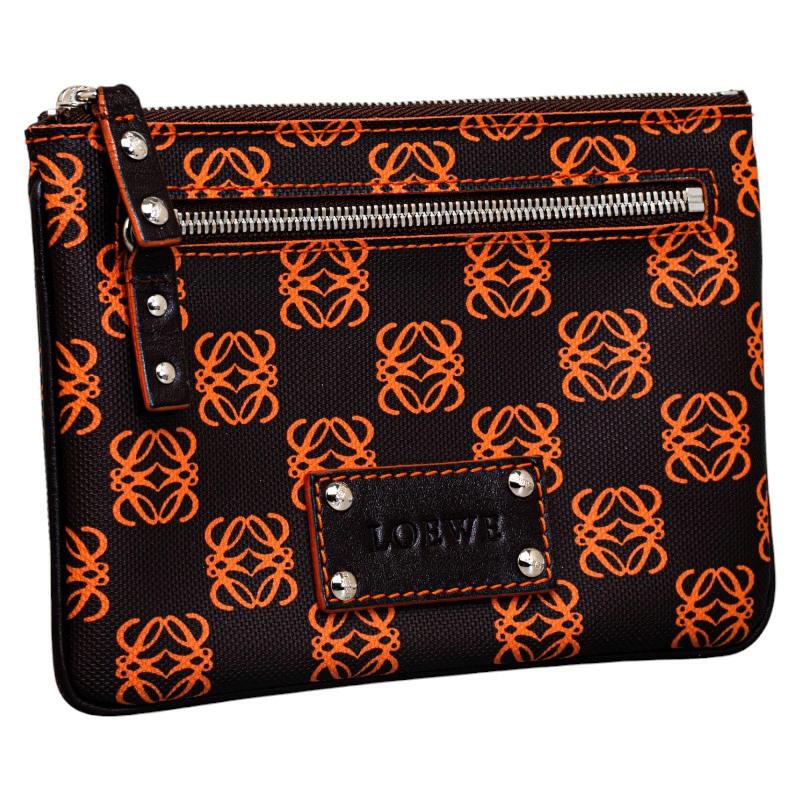 Pre-owned Loewe Anagram all-over print pouch in black and orange PVC and leather. Women's.
