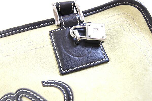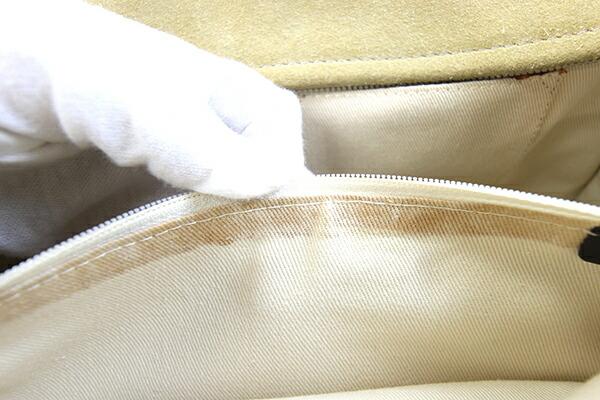 状態 | 外側:型崩れあり。スウェードにスレ・薄汚れ・小キズ・若干毛羽立ちあり、両面にハンドル跡あり。レザー部分にも所々小キズ、カデナによるスレ跡あり、フチや角等にスレ、スレによる色落ち所々あり。 内側:スレ、汚れ、シミあり。 金具:小キズ、スレあり。 |