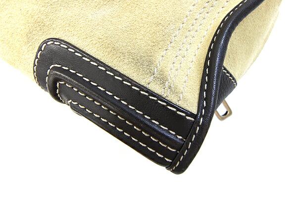 状態:外側:型崩れあり。スウェードにスレ・薄汚れ・小キズ・若干毛羽立ちあり、両面にハンドル跡あり。レザー部分にも所々小キズ、カデナによるスレ跡あり、フチや角等にスレ、スレによる色落ち所々あり。内側:スレ、汚れ、シミあり。金具:小キズ、スレあり。