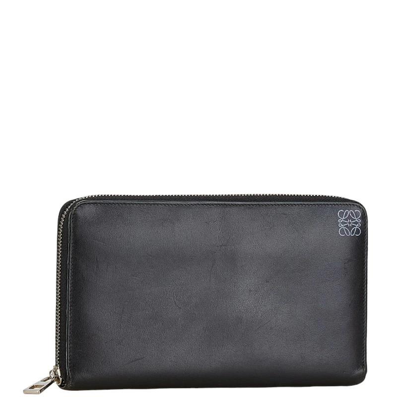 Pre-owned Loewe Anagram Long Wallet in Black Leather for Women