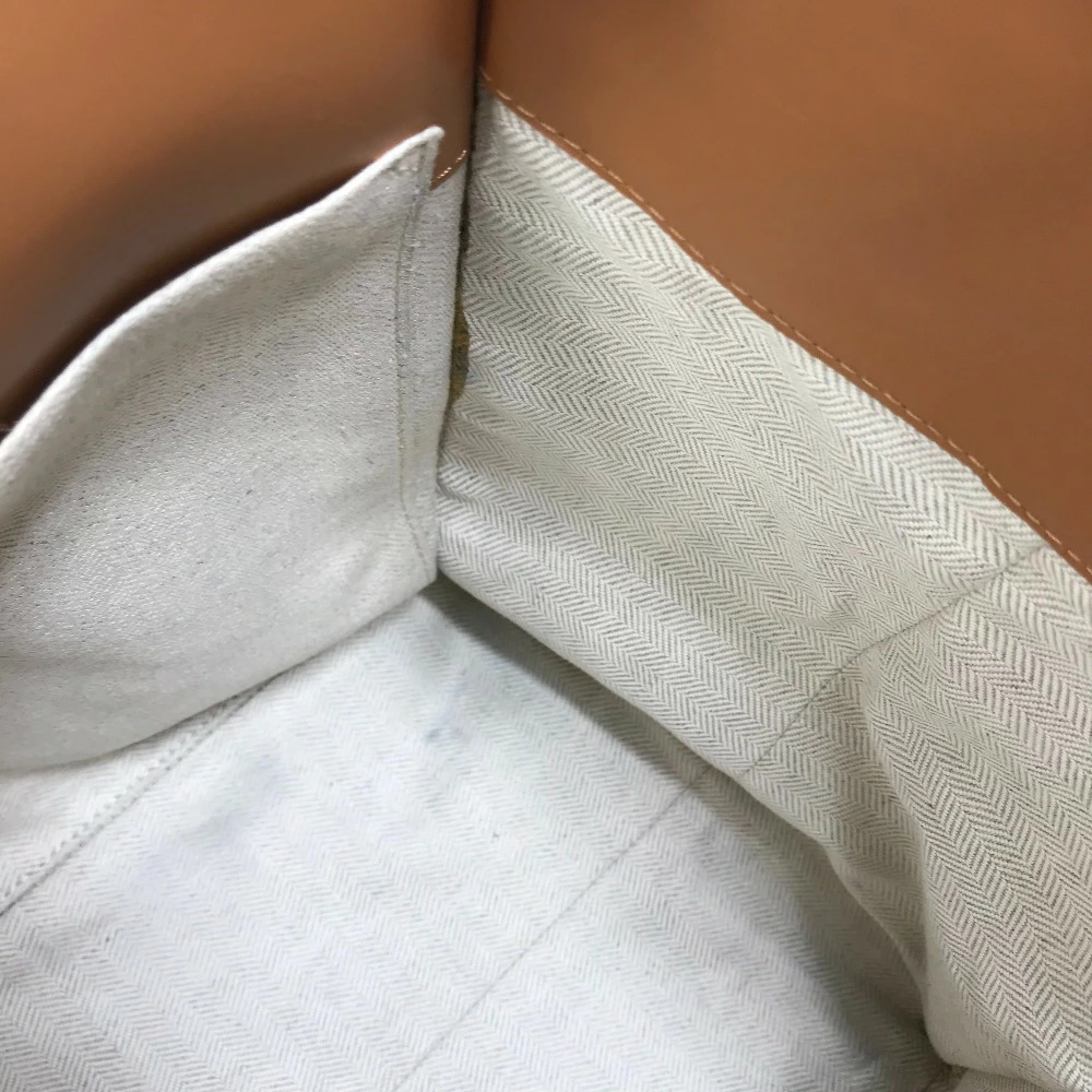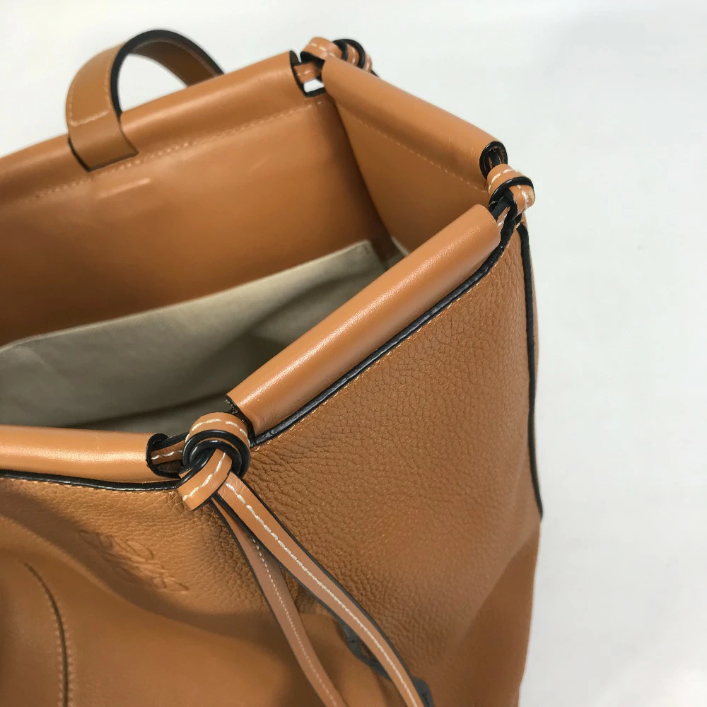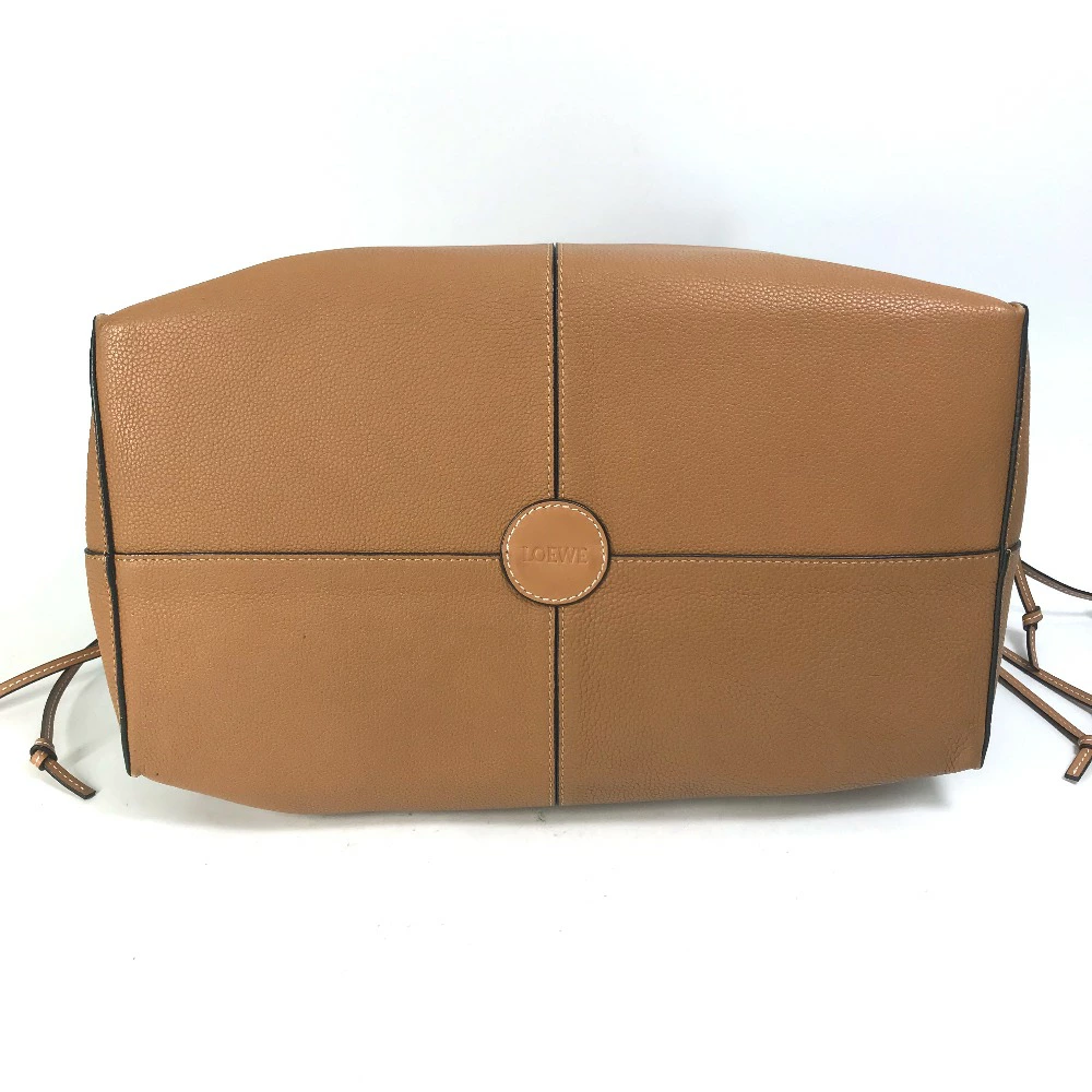 Pre-owned LOEWE Anagram Medium Cushion Tote Shoulder Bag in Camel Brown Leather.