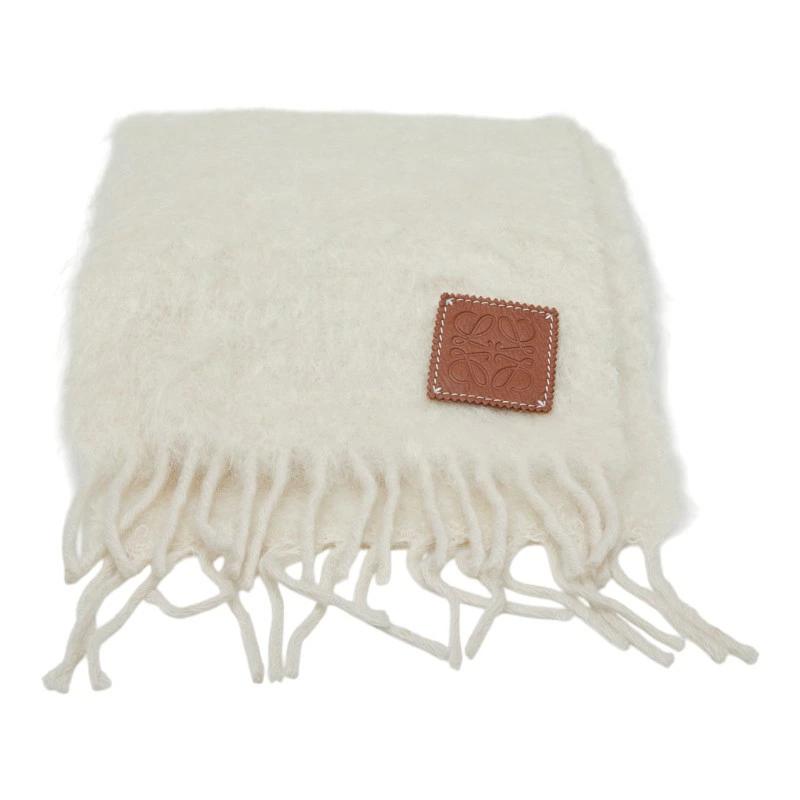 Pre-owned Loewe Anagram Scarf in Ivory Wool and Mohair for Women