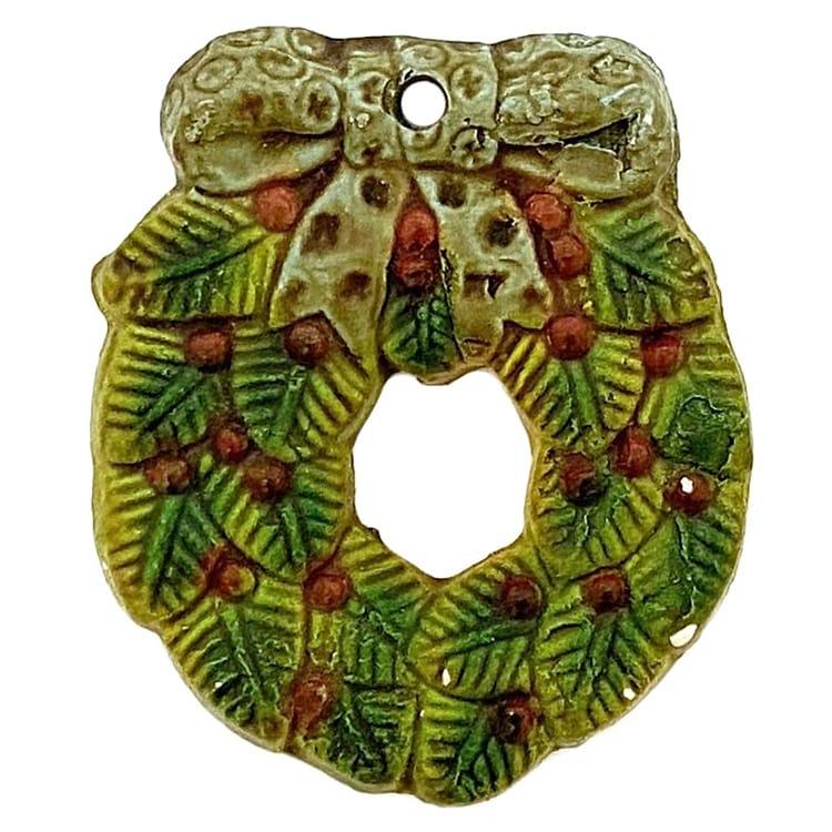 ロエベ オーナメント リース ec-23923 グリーン クリスマス 飾り 陶器 中古 LOEWE クリスマス リース Xmas レア ヴィンテージ お洒落 定番 人気 小物 雑貨 インテリア 緑色 赤色 レトロ ブランド雑貨 小さい ミニ 装飾 コンパクト 上品 ブランド 本物 鑑定済み