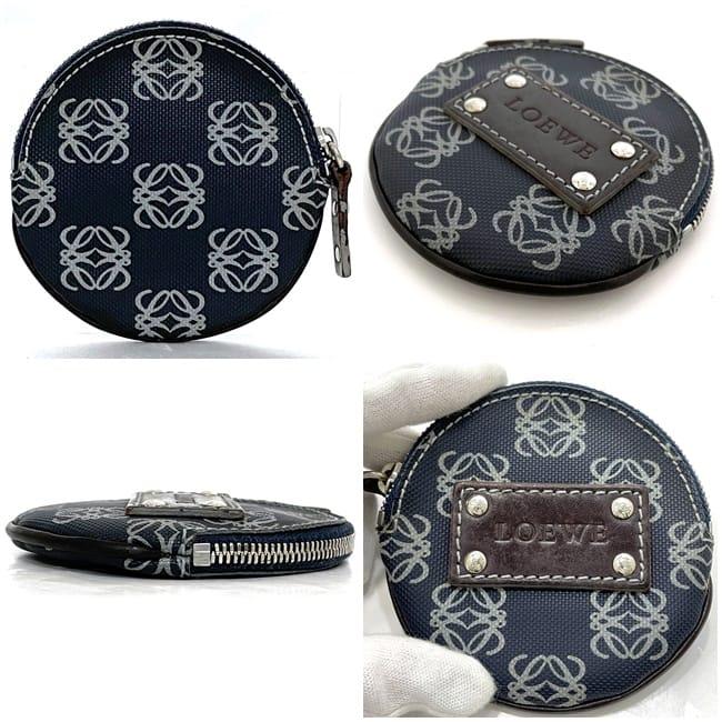 ロエベ コインケース ec-23910 ネイビー アナグラム 小銭入れ PVC レザー 中古 03412 LOEWE 財布 ミニ 定番 人気 女性 レディース 小物 小銭 コイン ケース 紺色 お洒落 小さい 革 コンパクト ロゴ エレガント シルバー金具 高級感 上品 ブランド 本物 鑑定済み