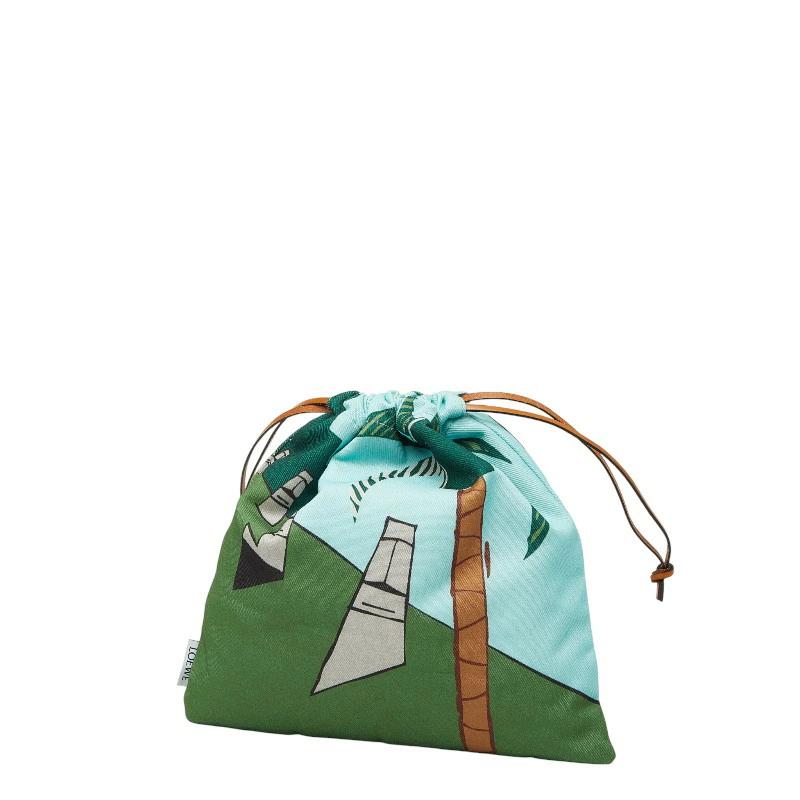 - ロエベ イースター アイランド ドローストリングポーチ グリーン マルチカラー キャンバス レディース LOEWE 【中古】