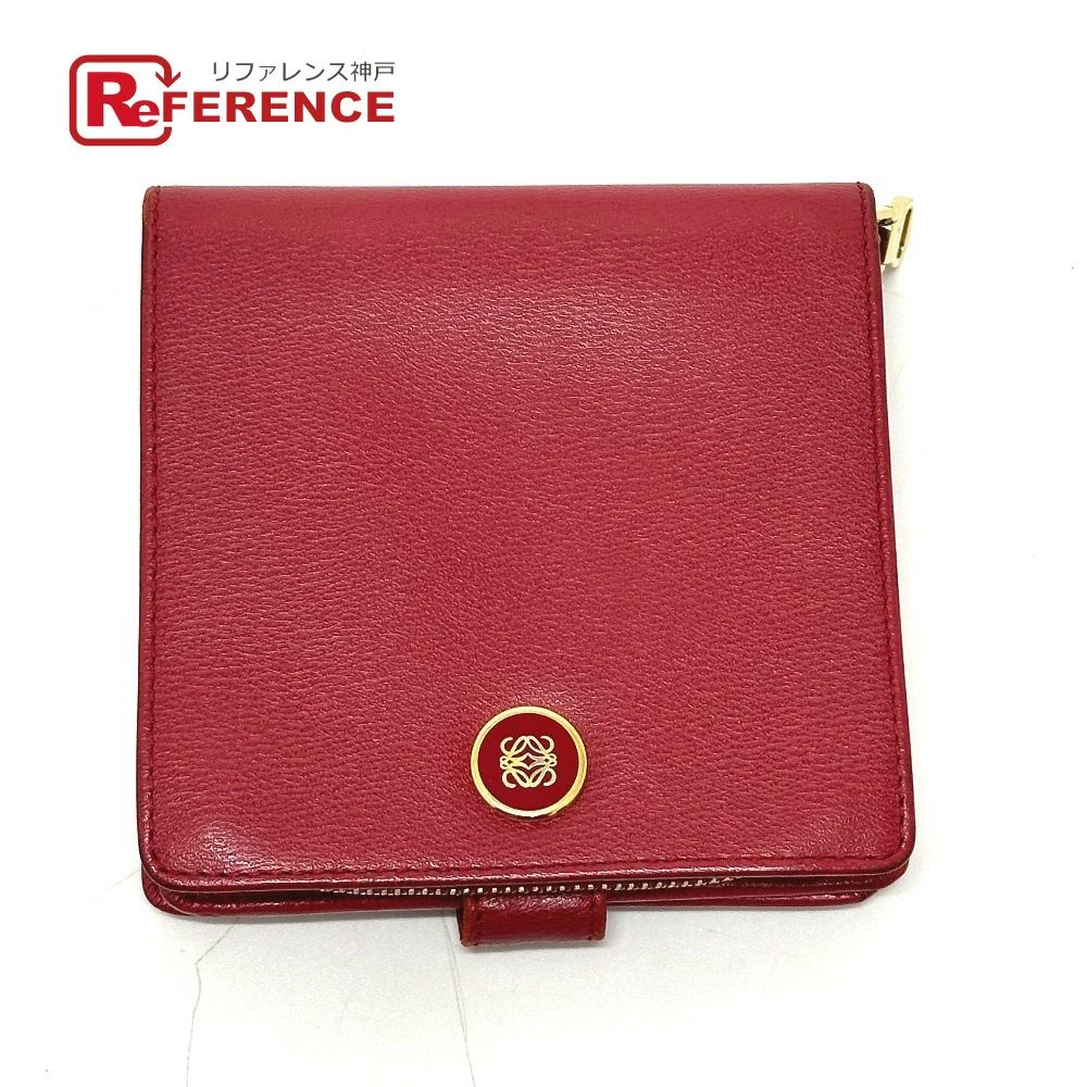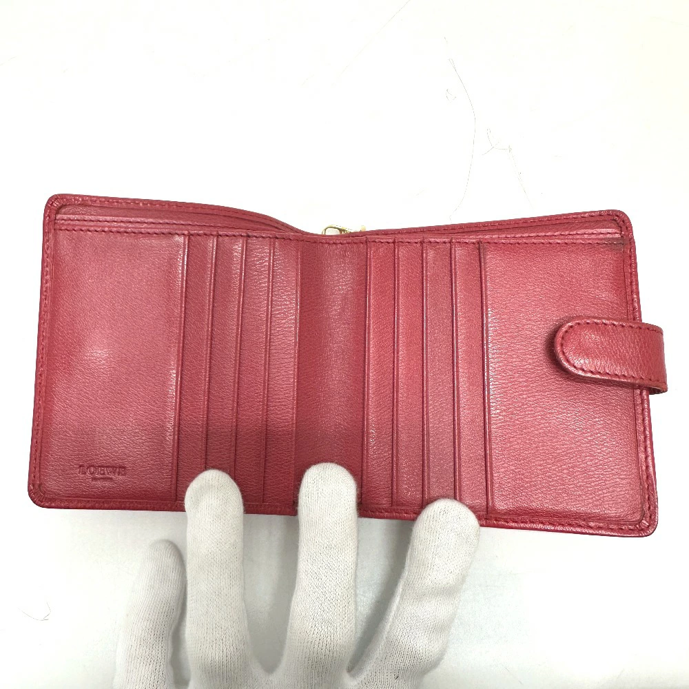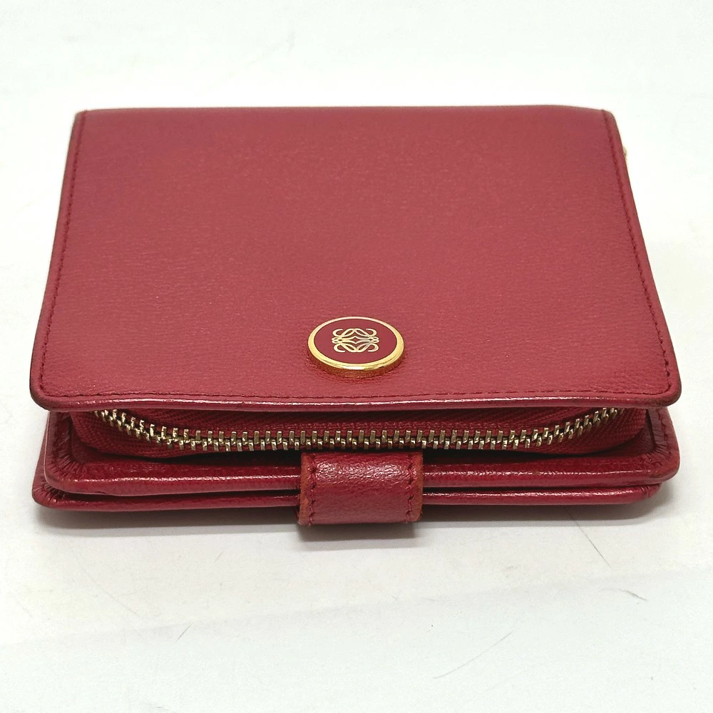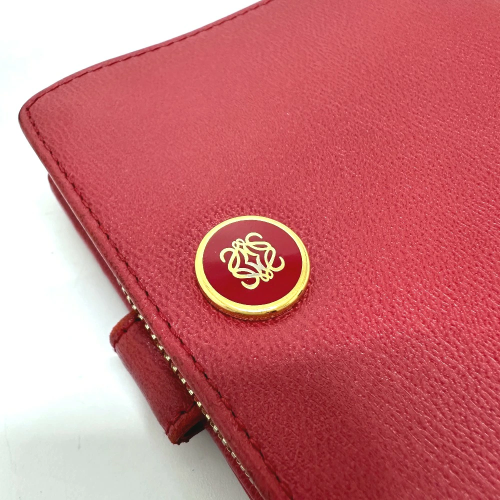 Pre-owned LOEWE logo bifold wallet in leather, red, for women.