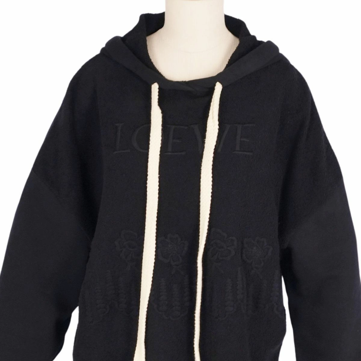 Pre-owned LOEWE long-sleeved hoodie with embroidered logo, cotton, size S, black.