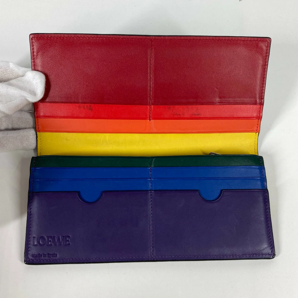 Pre-owned LOEWE Rainbow Anagram Bifold Long Wallet in Leather, Black, Men's