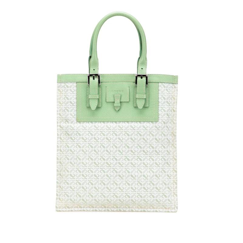 Pre-owned Loewe Repeat Anagram Tote Bag in Green Canvas and Leather. Women's.