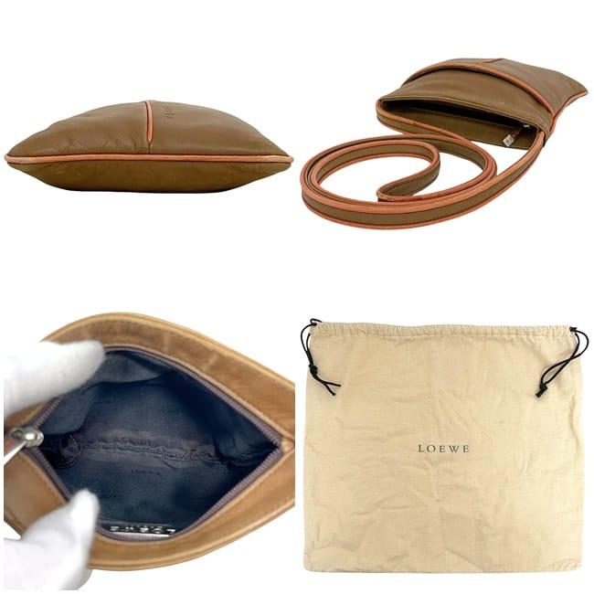 ロエベ ショルダーバッグ ec-23866 ブラウン ポシェット ナッパ レザー 中古 LOEWE クロスボディ 茶色 ミニバッグ ファスナー 斜め掛け ミニ ファスナー ヴィンテージ レディース 女性 定番 人気 革 ナパレザー シンプル ブランド 本物 鑑定済み
