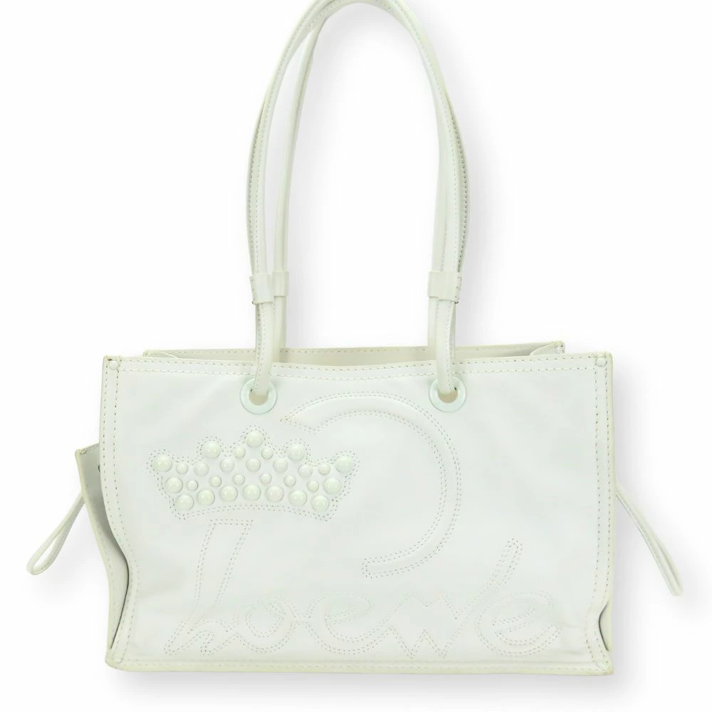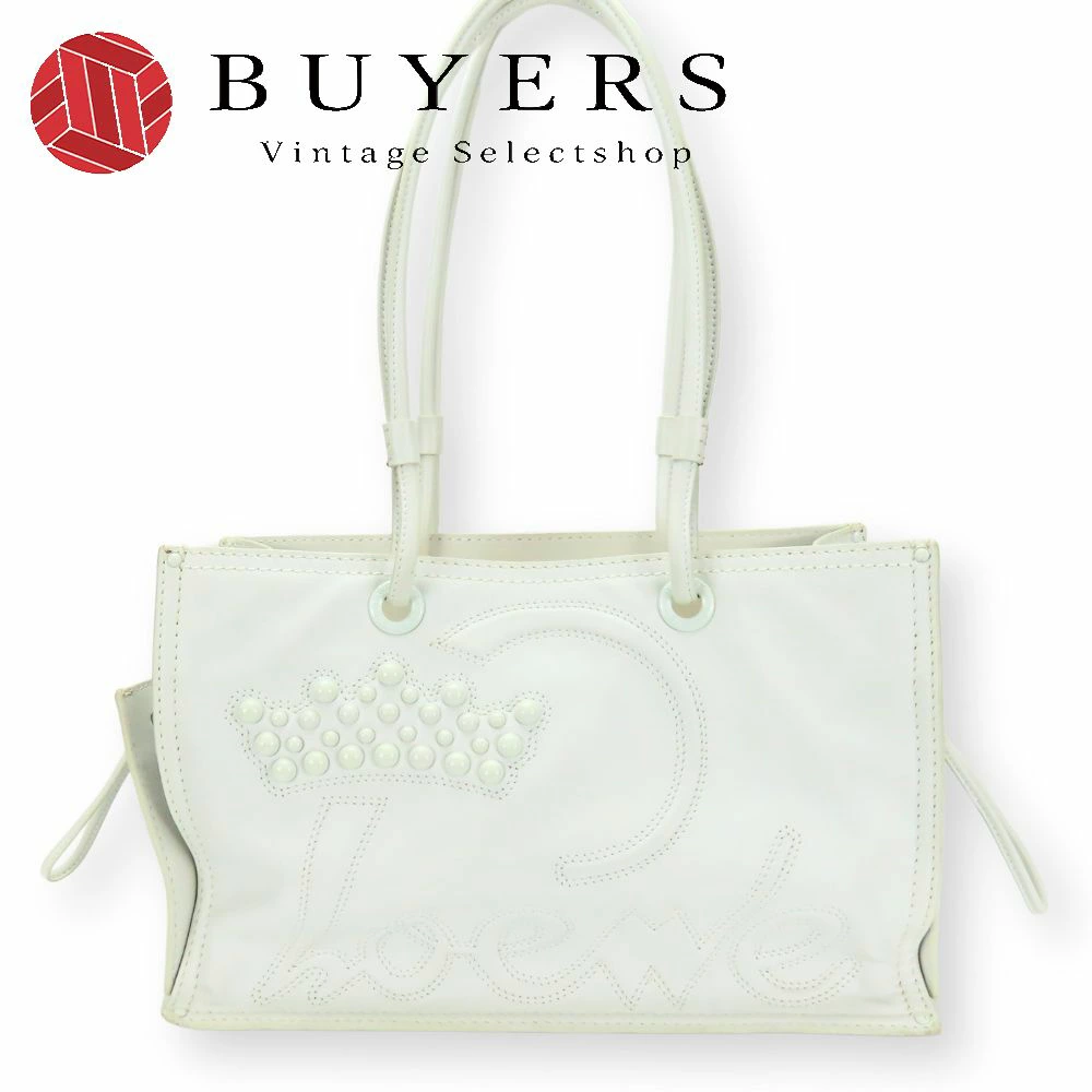 | 品名 | 【中古】 ロエベ トートバッグ クラウンロゴステッチ レザー プラスチック ホワイト スタッズ ショッパートート 肩掛け レディース 女性 LOEWE |