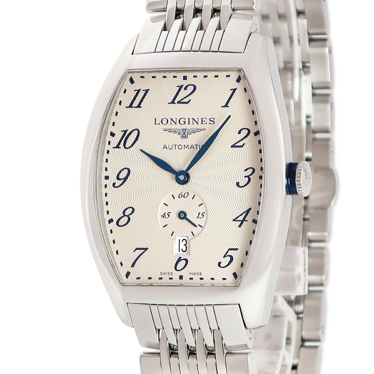 ロンジン LONGINES エヴィデンツァ L2.642.4 デイト スモールセコンド ギョウシェ 青針 トノー メンズ 腕時計自動巻き シルバー 【中古】【店頭受取不可】