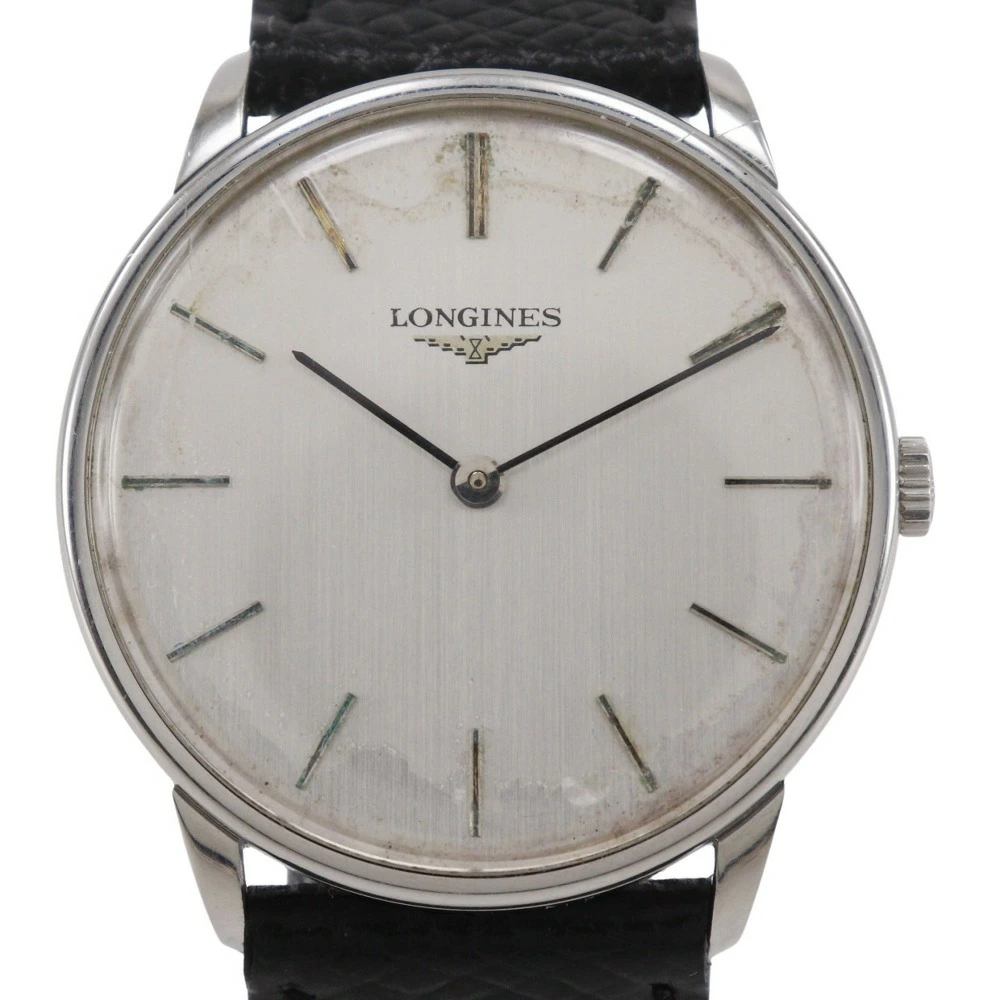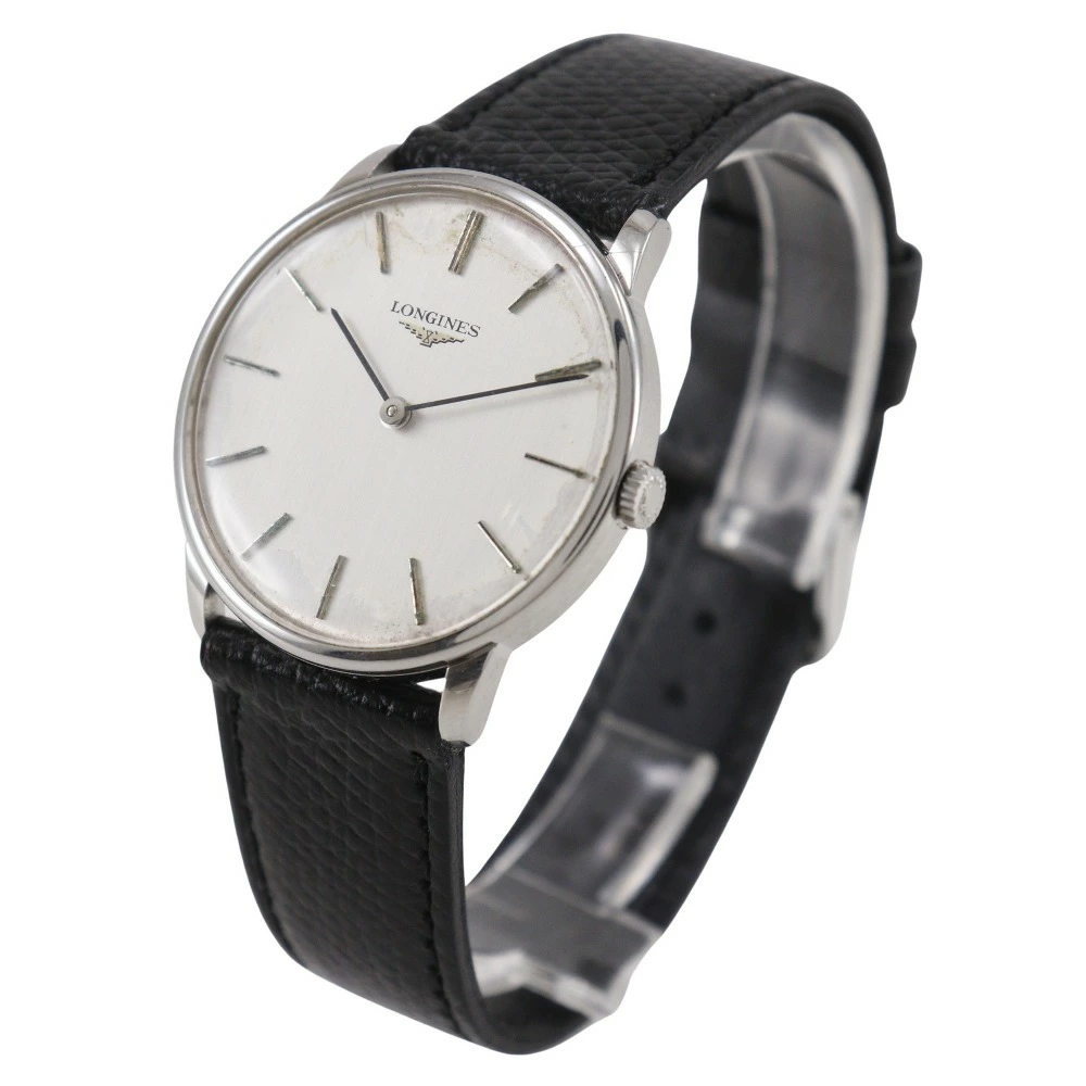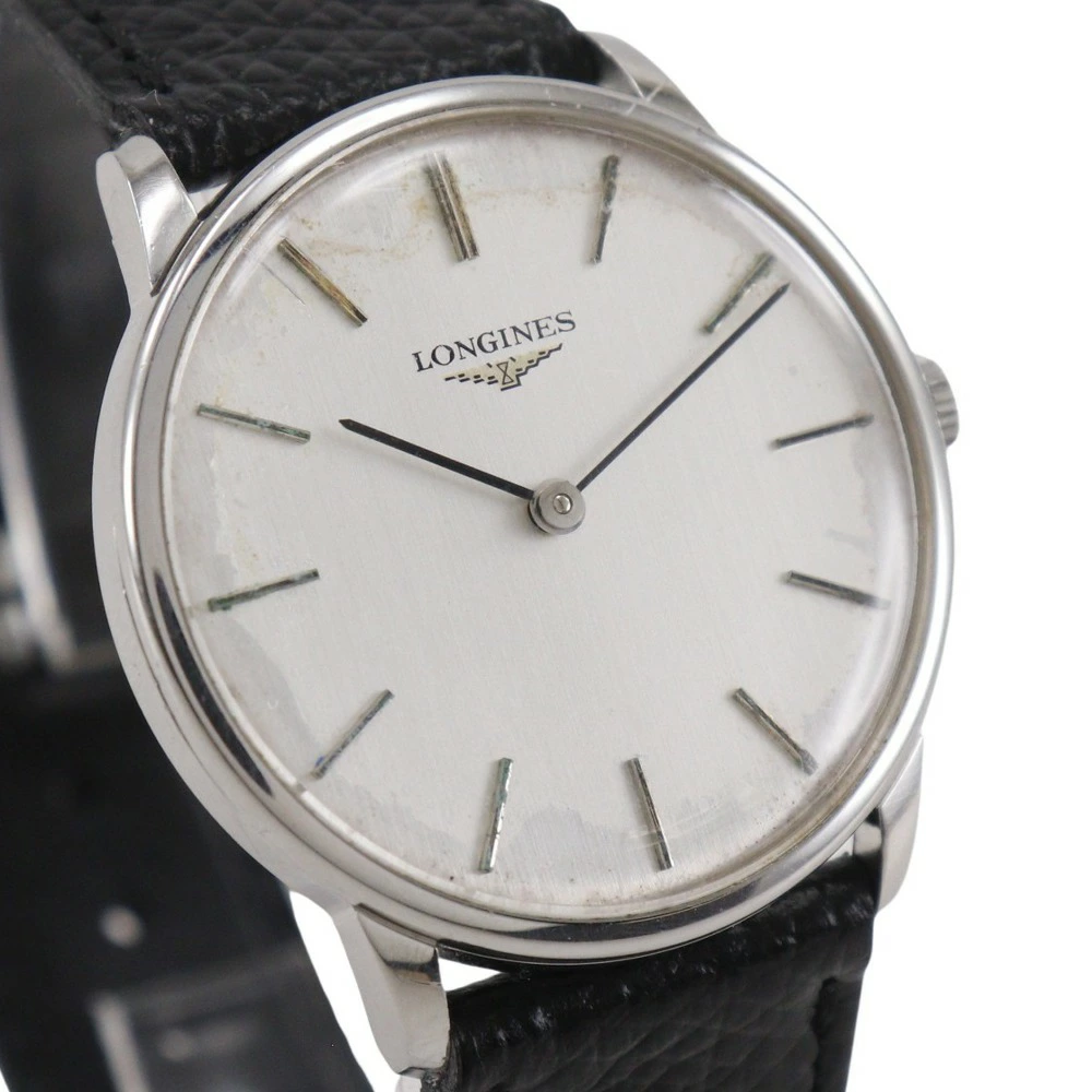 Pre-owned Longines men's watch, cal. 847.4, stainless steel and leather, black quartz movement, analog display, silver dial.